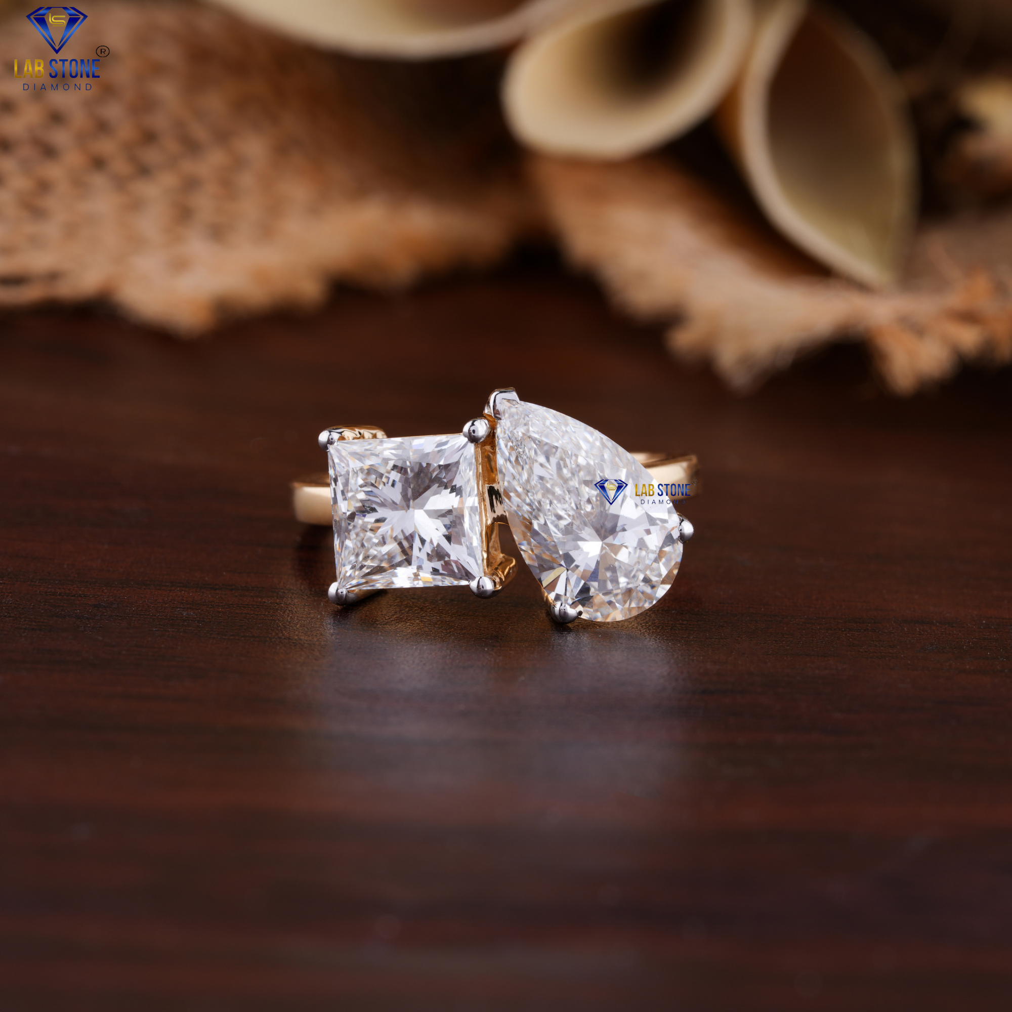 3.80 TDW Princess & Pear Cut Women's Diamond Engagement Ring