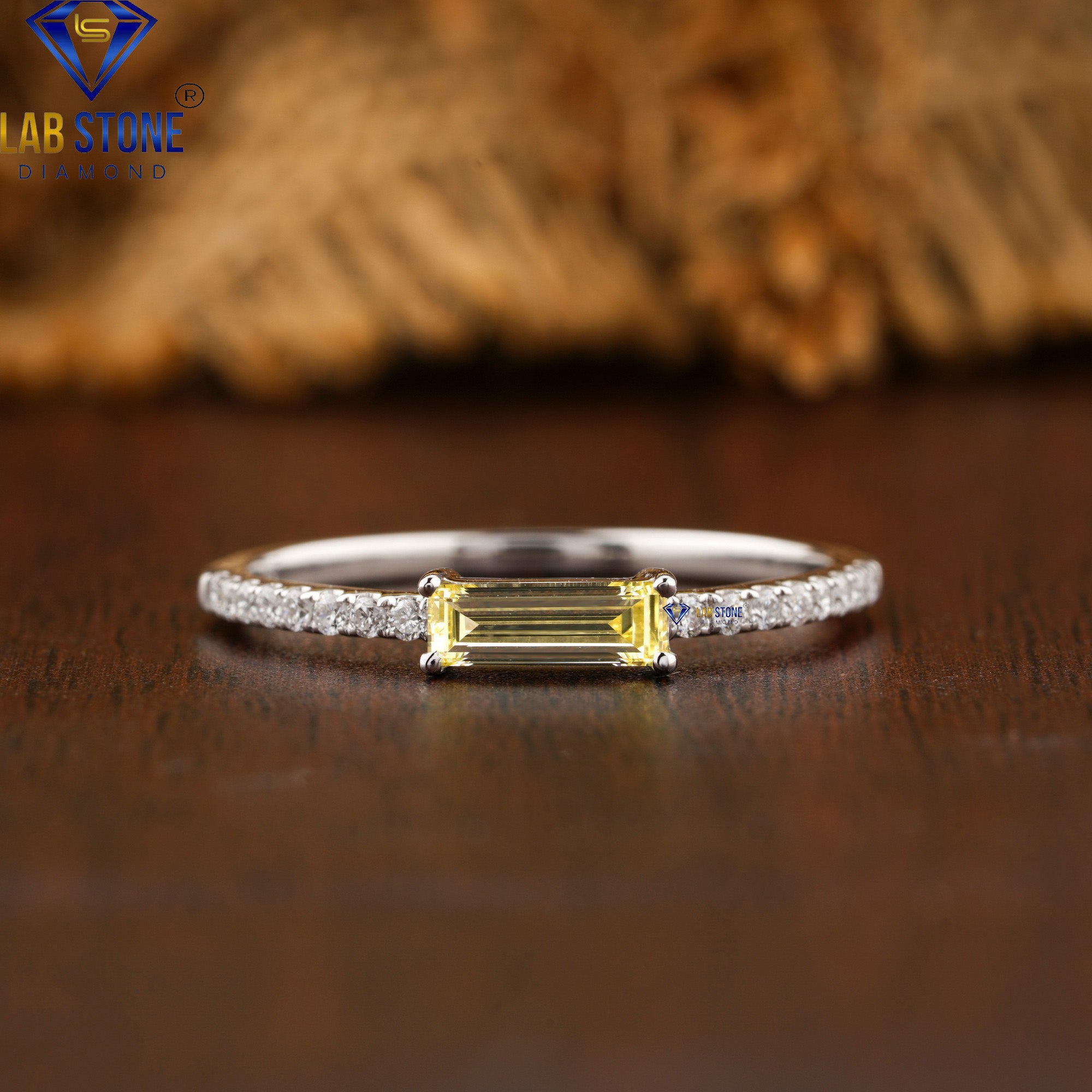 0.74 TDW Fancy Yellow Baguette & Round Cut Diamond Women’s Engagement Ring
