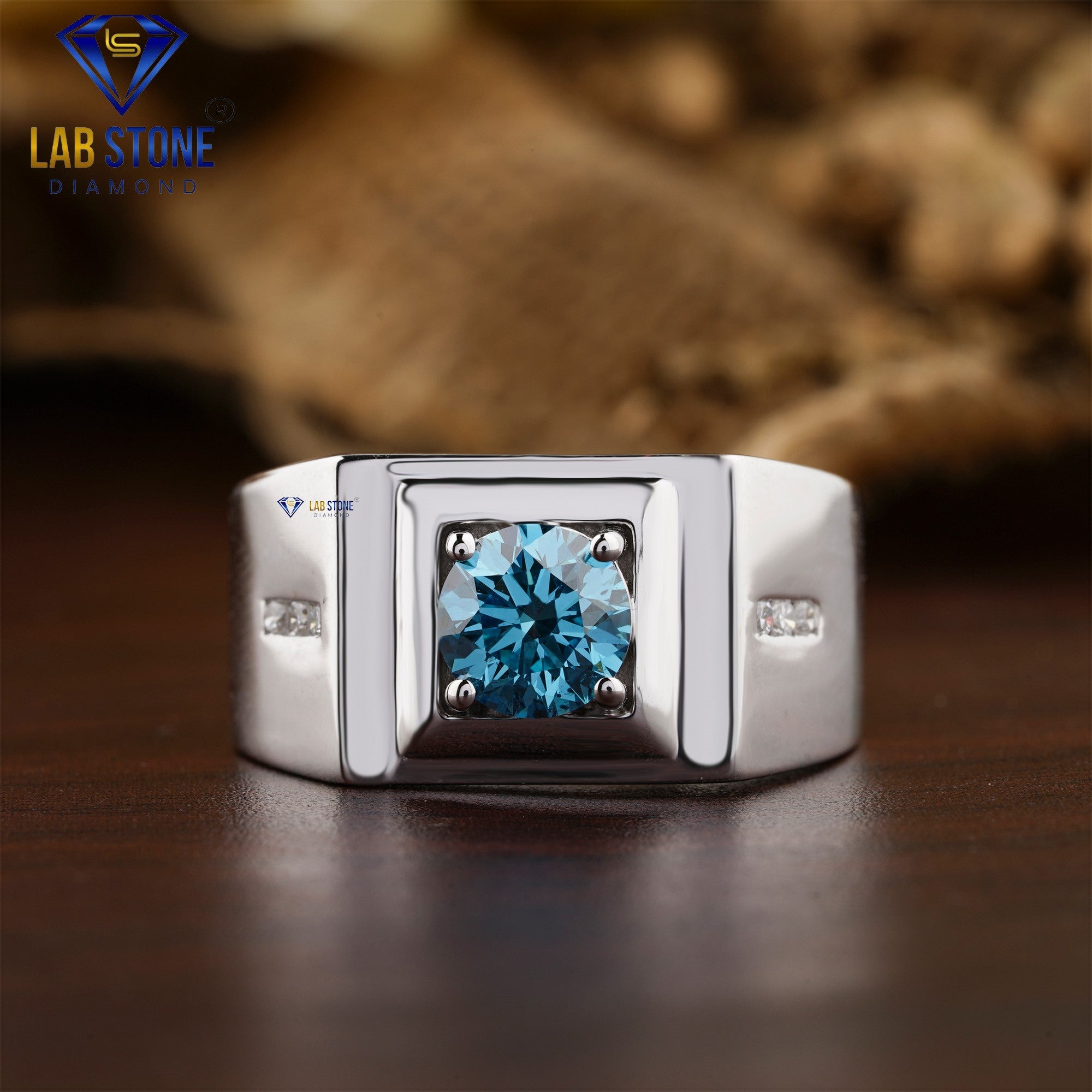 1.09 TDW Blue Round & Round Cut Daimond Men’s Engagement Ring