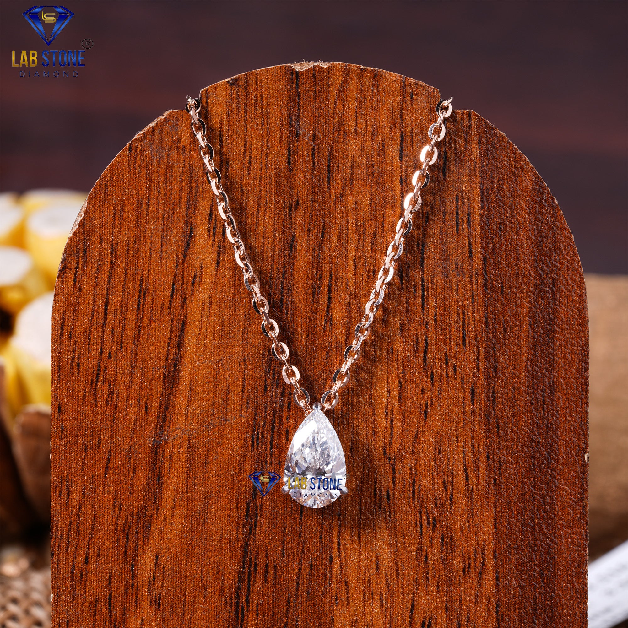 3.11 TDW Pear Cut Diamond Solitaire Pendant with Chain