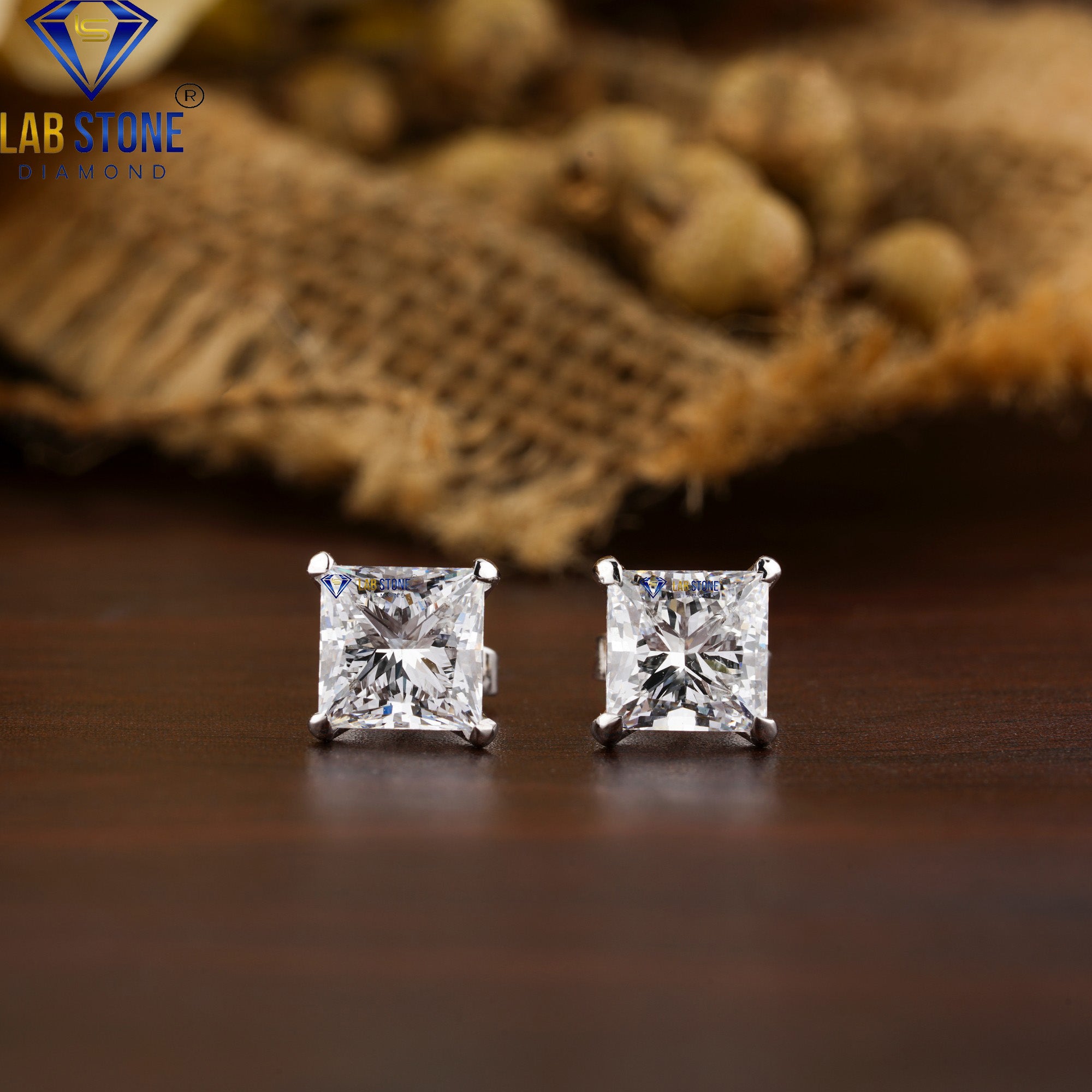1.35 TDW Princess Cut Diamond Solitaire Stud Earrings