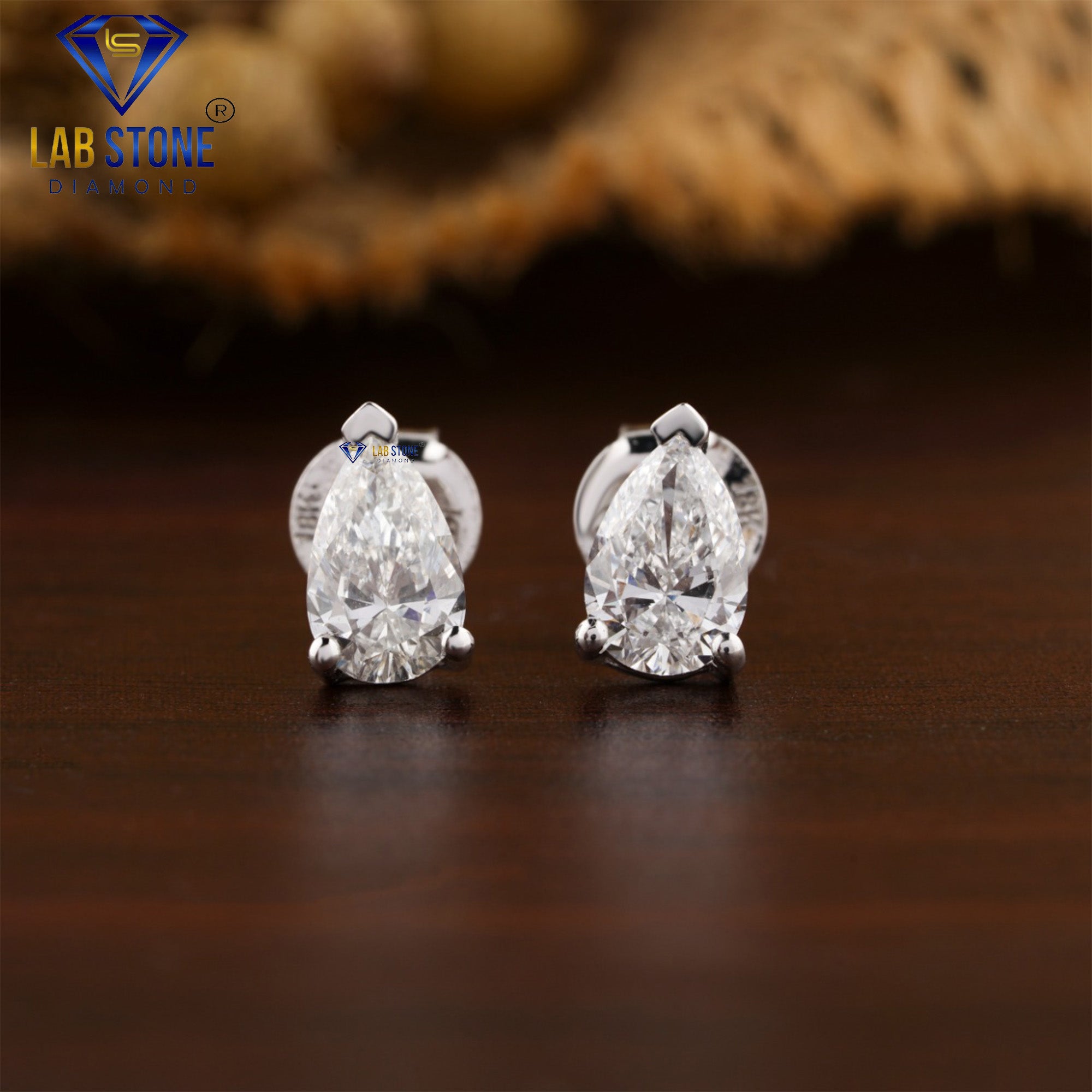 0.90 TDW Pear Cut Diamond Solitaire Stud Earring