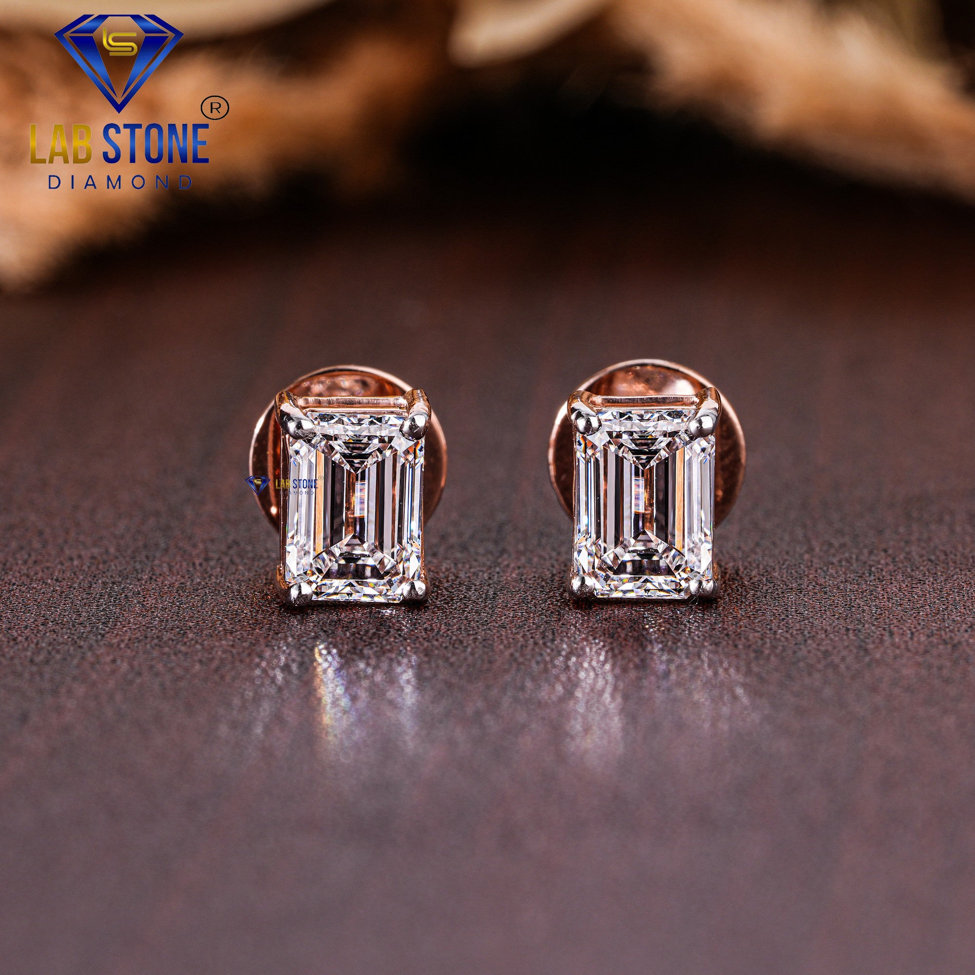 3.67 TDW Emerald Cut Diamond Solitaire Stud Earring