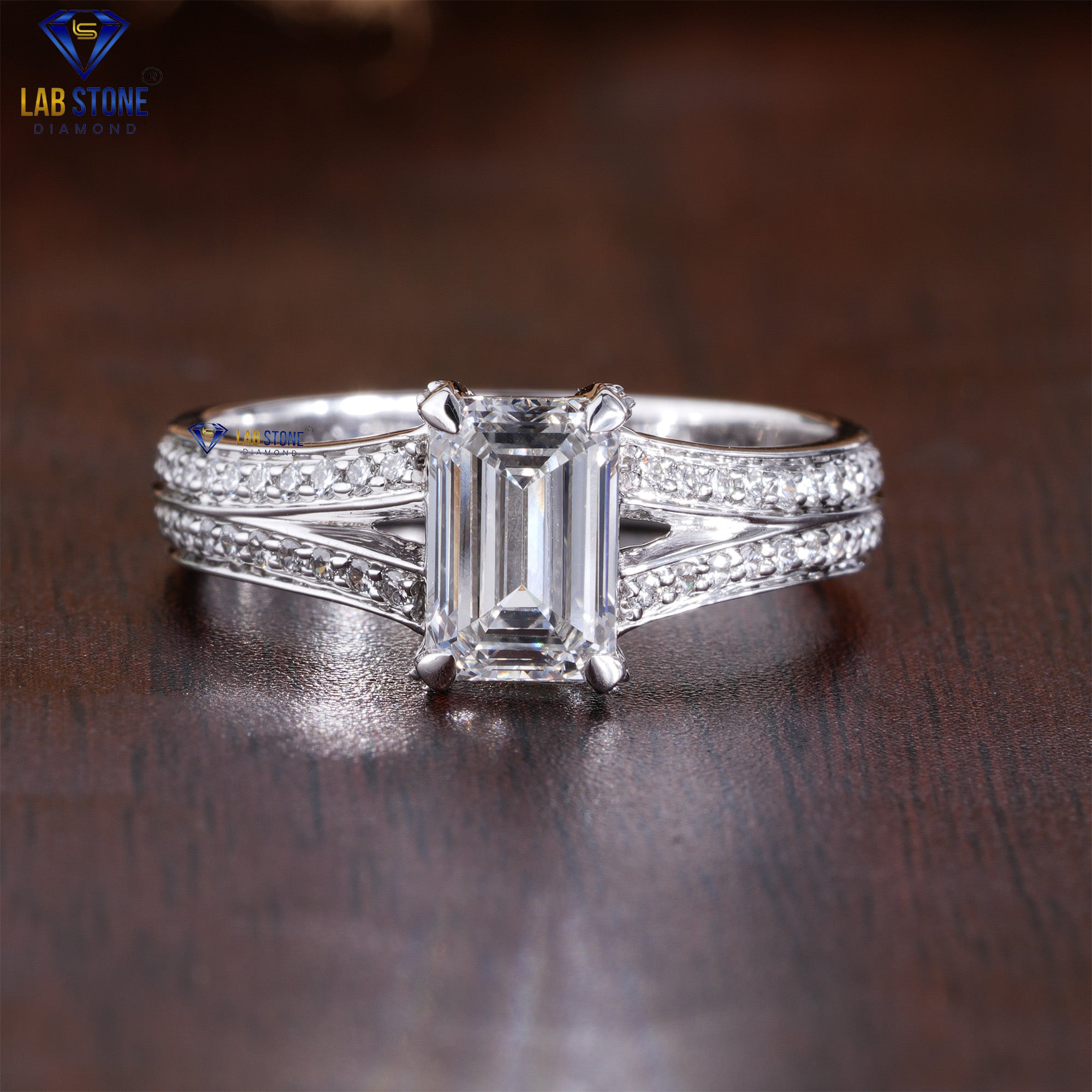 Regular price $1,670.00Sale price $1,670.00 Regular priceUnit price / perThis stunning 3.78 total diamond weight engagement ring features a beautiful mix of emerald cut and round cut diamonds that shine with rich, elegant sparkle. The...
