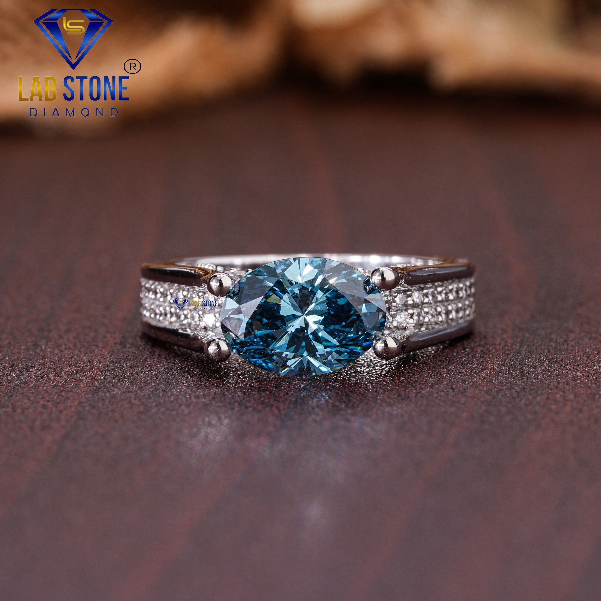 1.72 TDW F. Blue Oval & Round Cut Women’s Engagement Diamond Ring