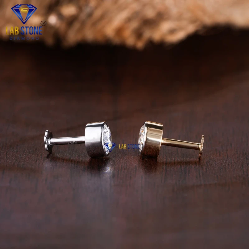0.32+ Carat Round Cut Diamond White/Yellow Gold Earring by Labstone / Stud Earring / EF color VS clarity