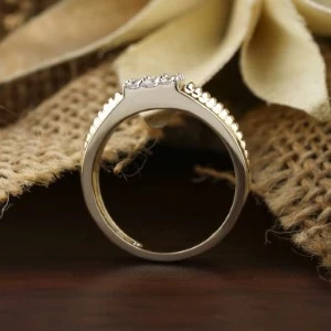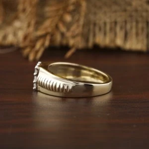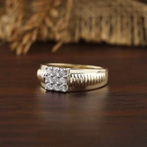2.09+ Carat Princess & Round Cut Diamond Yellow Gold Men's ring by Labstone , Dainty Diamond Ring ,EF-VS color