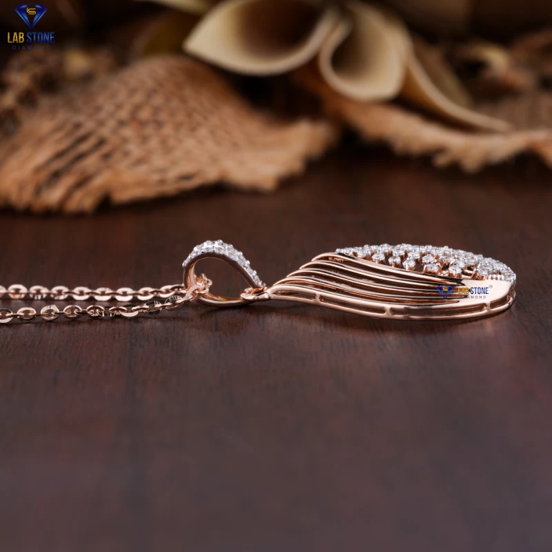 0.657+ Carat Round Cut Diamond Rose Gold Pendant&Earring With Chain by Labstone ,Twinkling Pendant Set , EF-VS color