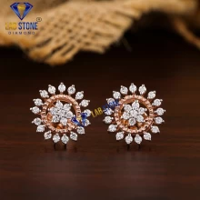3.06+ Carat Pear, Round Cut Diamond Rose Gold Pendant & Earring Set by Labstone ,Diamond Pendant Earring ,EF-VS color