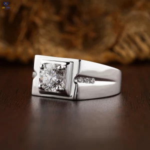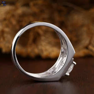 2.09+ Carat Princess & Round Cut Diamond Yellow Gold Men's ring by Labstone , Dainty Diamond Ring ,EF-VS color