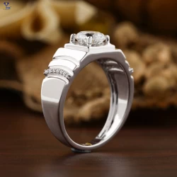 2.09+ Carat Princess & Round Cut Diamond Yellow Gold Men's ring by Labstone , Dainty Diamond Ring ,EF-VS color