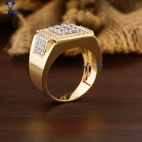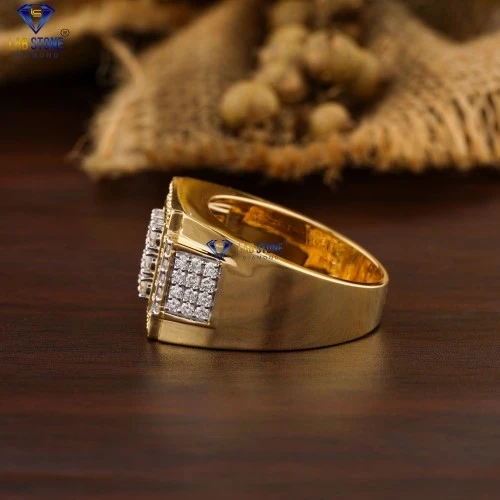 2.09+ Carat Princess & Round Cut Diamond Yellow Gold Men's ring by Labstone , Dainty Diamond Ring ,EF-VS color