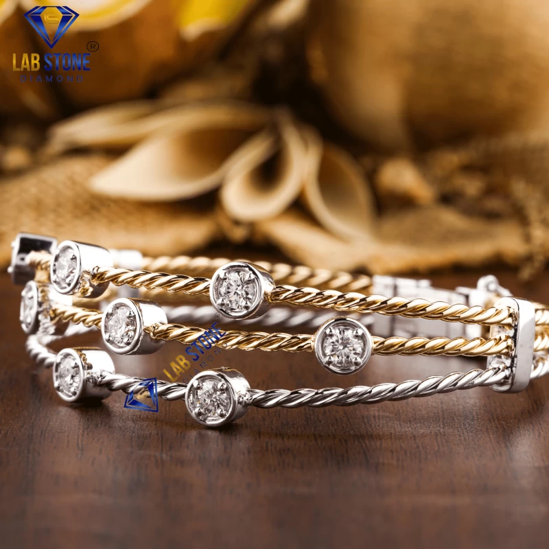 4.59+ Carat Round Cut Diamond Yellow Gold Diamond Bracelet by Labstone , Luxurious Diamond Beracelet , EF-VS color