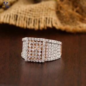2.09+ Carat Princess & Round Cut Diamond Yellow Gold Men's ring by Labstone , Dainty Diamond Ring ,EF-VS color