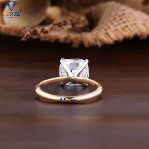 3.05+ Carat Cushion Cut Diamond Rose Gold Ring By Labstone , Classic Elegance Diamond Ring , EF-VS color