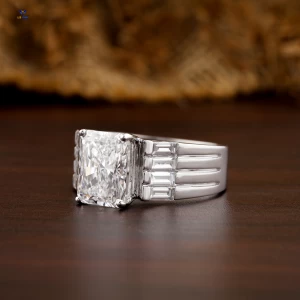 4.22 +Carat Radiant And Baguette Brilliant Cut Diamond Ring,Man's Ring, Engagement Ring, Wedding Ring, E Color, VVS2-VS2 Clarity