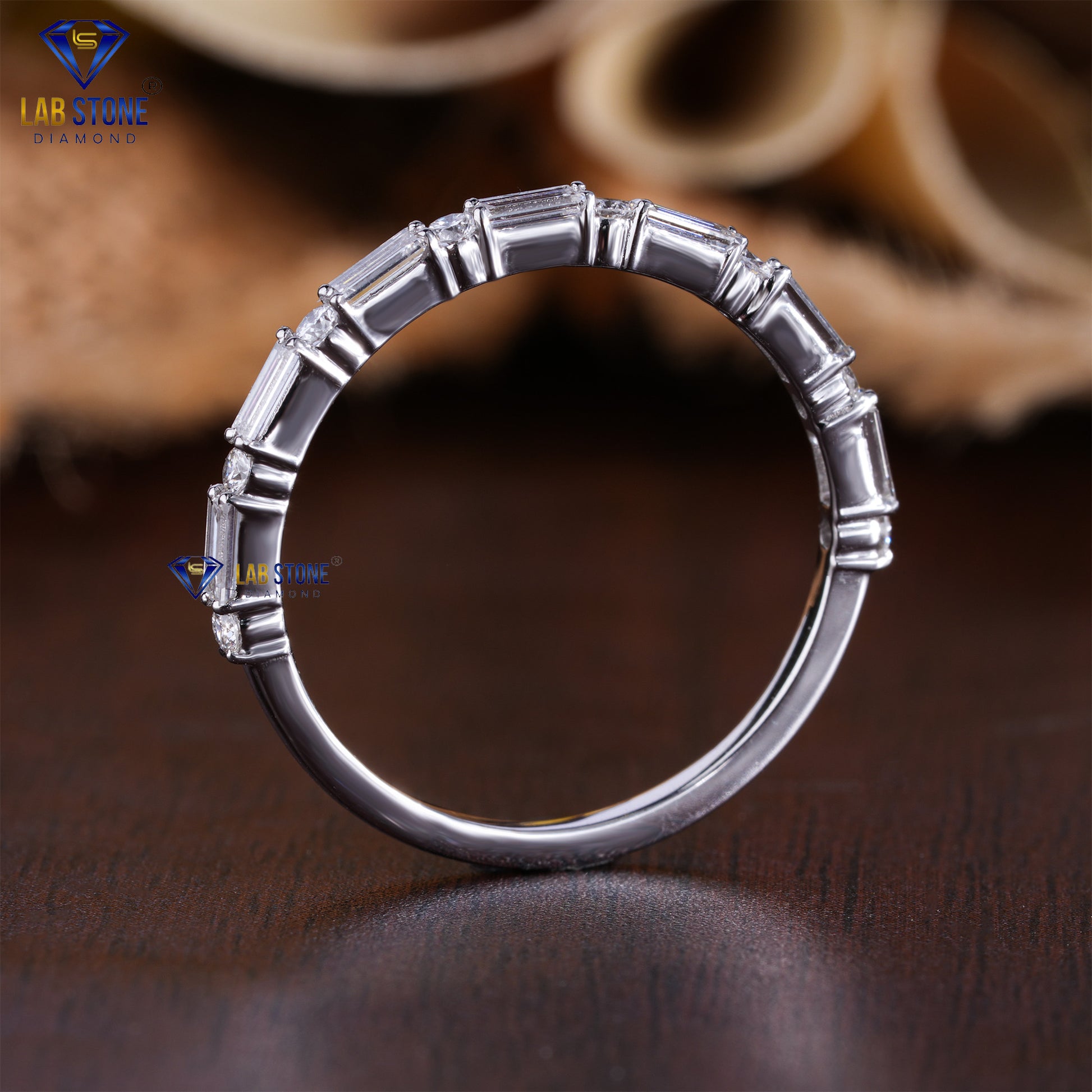 This elegant 0.44 total diamond weight band ring features a stylish mix of round and baguette cut diamonds that create a smooth, modern sparkle. The combination of shapes gives the ring a unique yet classy look, making it perfect as a wedding band, anniversary ring, or a chic everyday piece. Slim, comfortable, and easy to stack with other rings, this diamond band is a great choice for someone who loves simple jewelry with a touch of luxury.