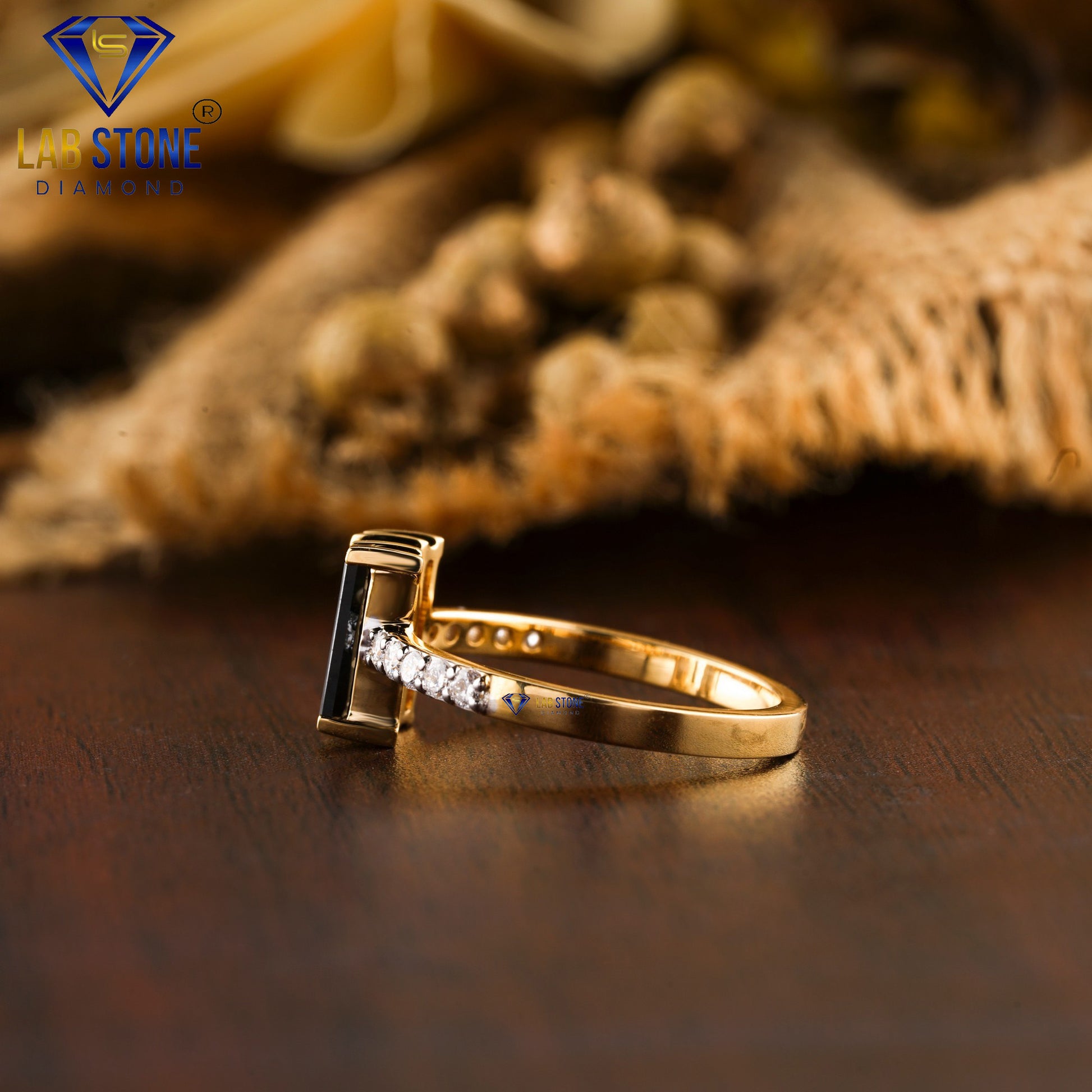 0.57 TDW Fancy Black Baguette Gemstone & Round Cut Diamond Women’s Engagement Ring