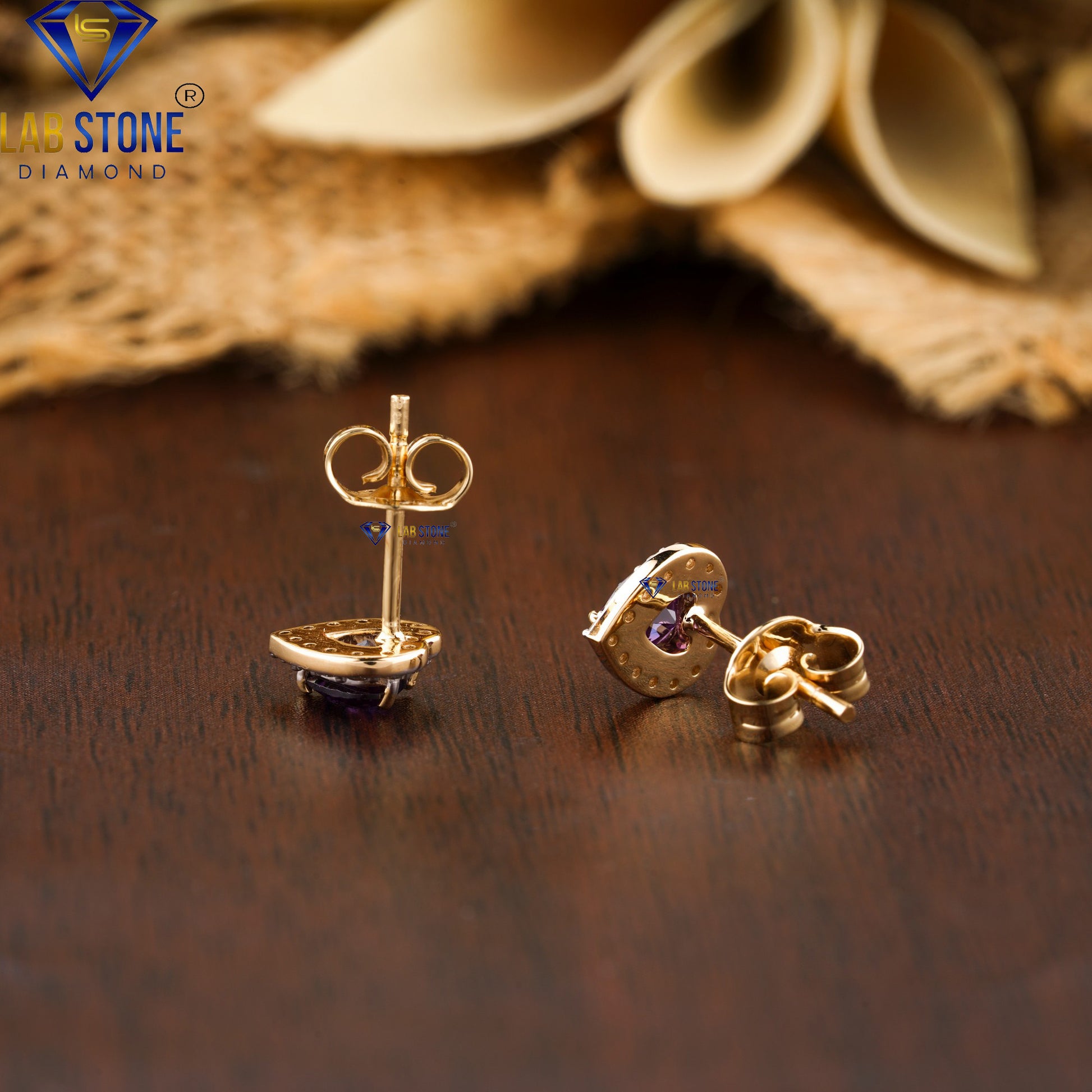 0.72 TDW Amethyst Heart & Round Diamond Stud Earrings