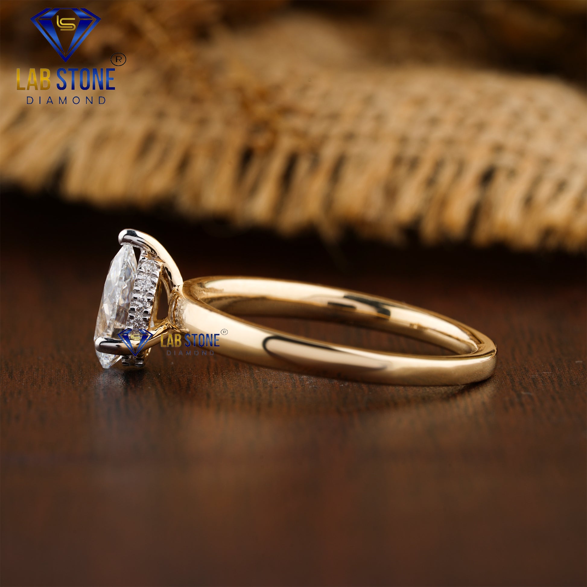 This stunning 1.05 carat total weight women’s diamond ring features a unique mix of pear and round cut diamonds with a hidden halo for extra sparkle. The elegant pear shape creates a flattering, elongated look on the finger, while the hidden halo adds a luxurious shine from every angle. Perfect as an engagement ring or a special occasion piece, this ring combines modern design with timeless brilliance.