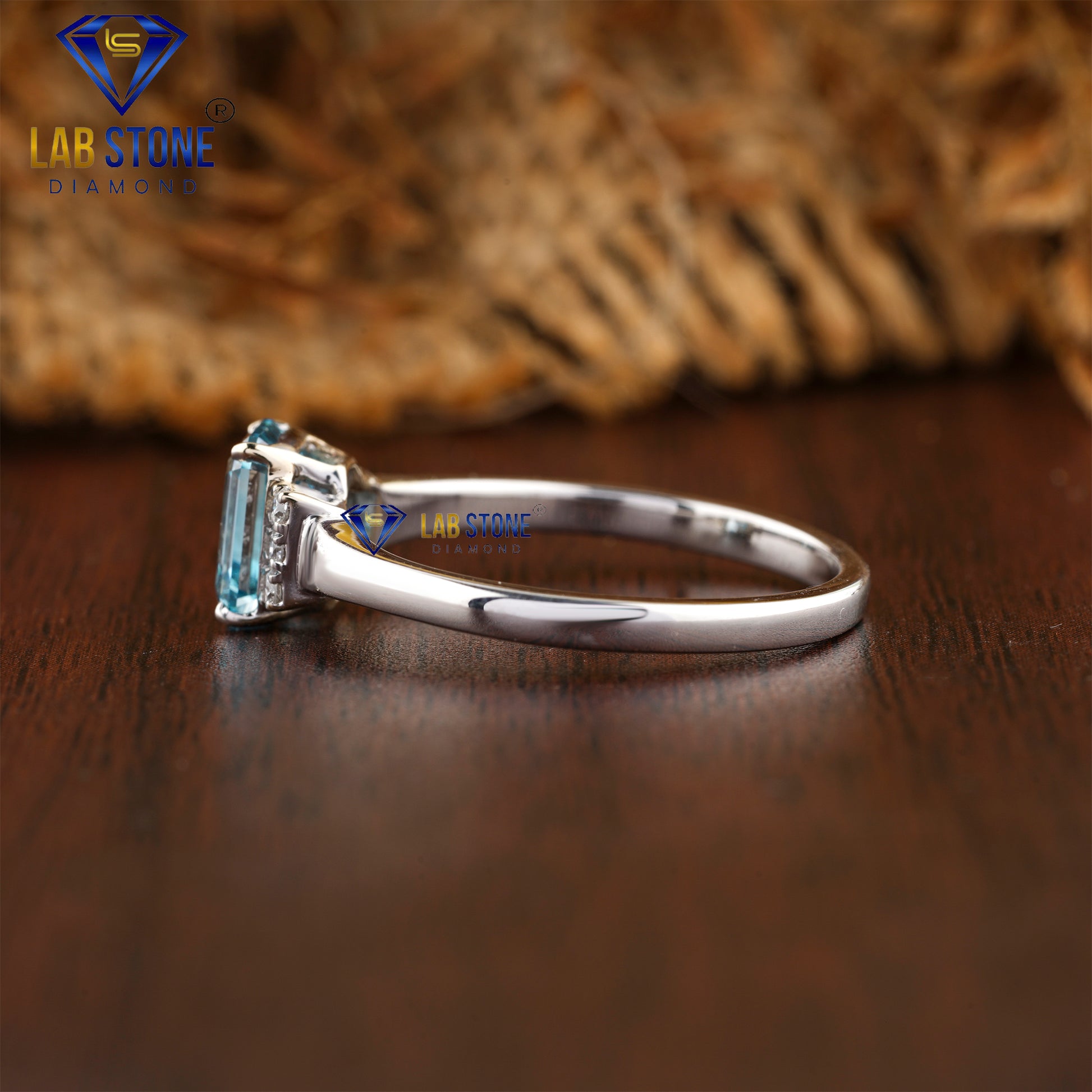 1.06 TDW Fancy Blue Emerald & Round Cut Daimond Women’s Engagement Ring