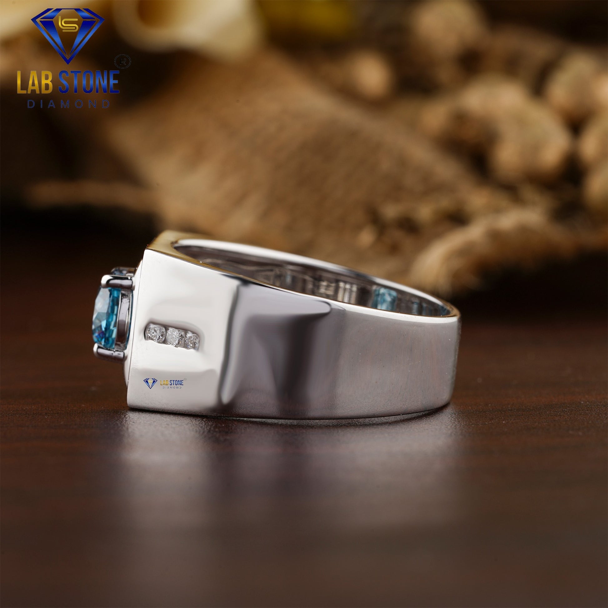 1.09 TDW Blue Round & Round Cut Daimond Men’s Engagement Ring