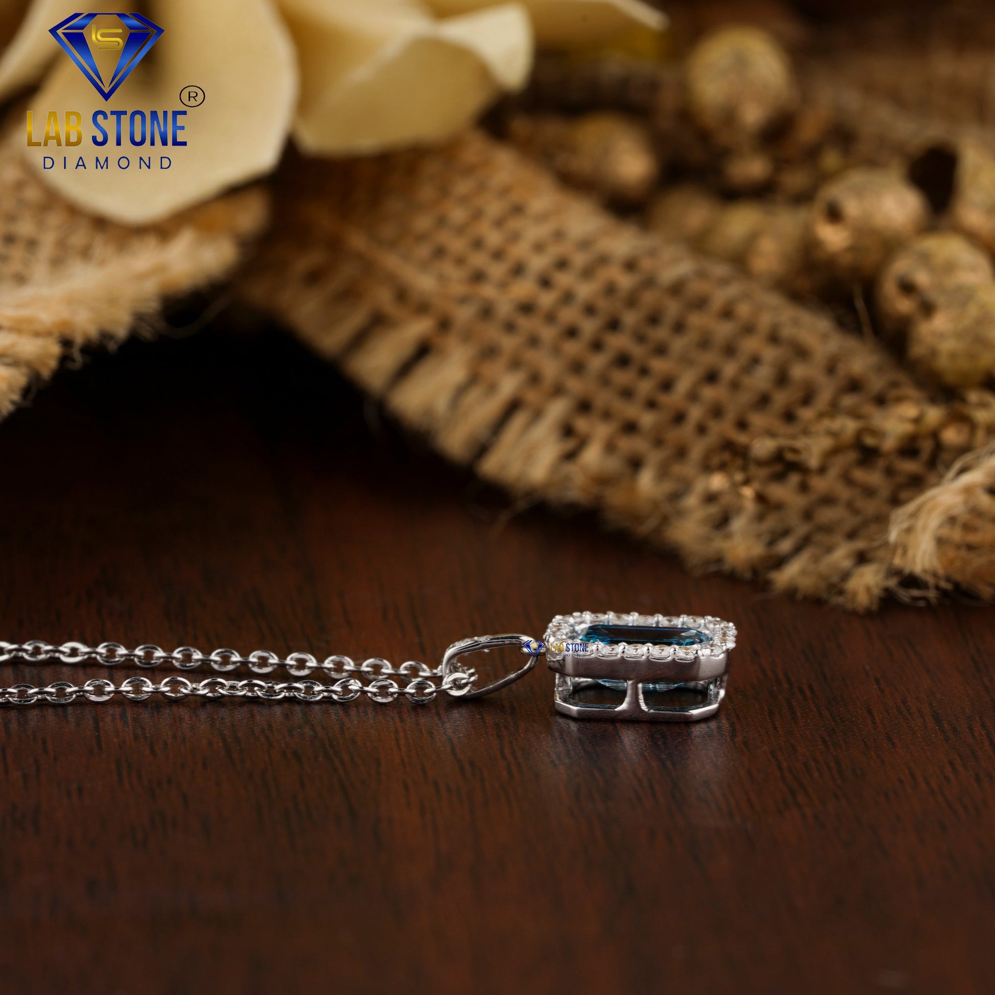 Showcasing a captivating fancy blue emerald-cut diamond accented by sparkling round brilliant diamonds, this custom pendant blends bold color with timeless brilliance. Expertly crafted for elegance and individuality, it’s a striking piece designed to elevate both everyday wear and special occasions.