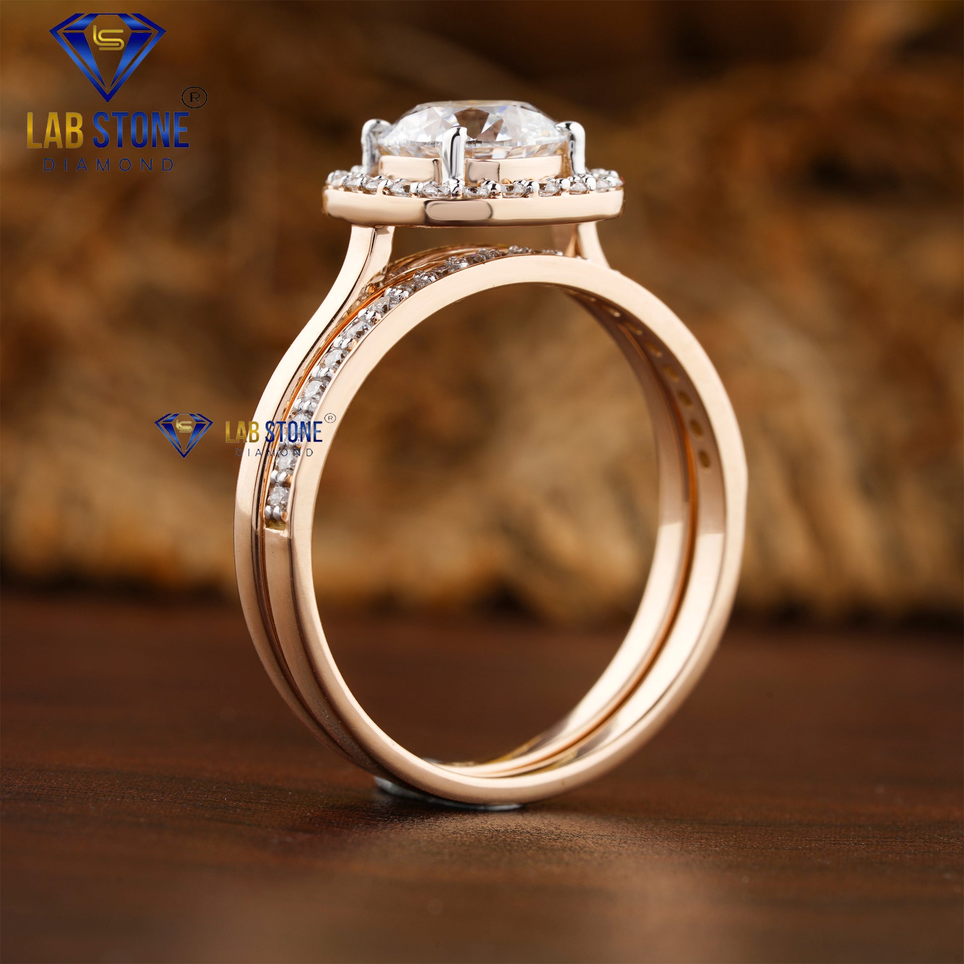 1.49 TDW Round Cut Women’s Halo Diamond Ring with Band