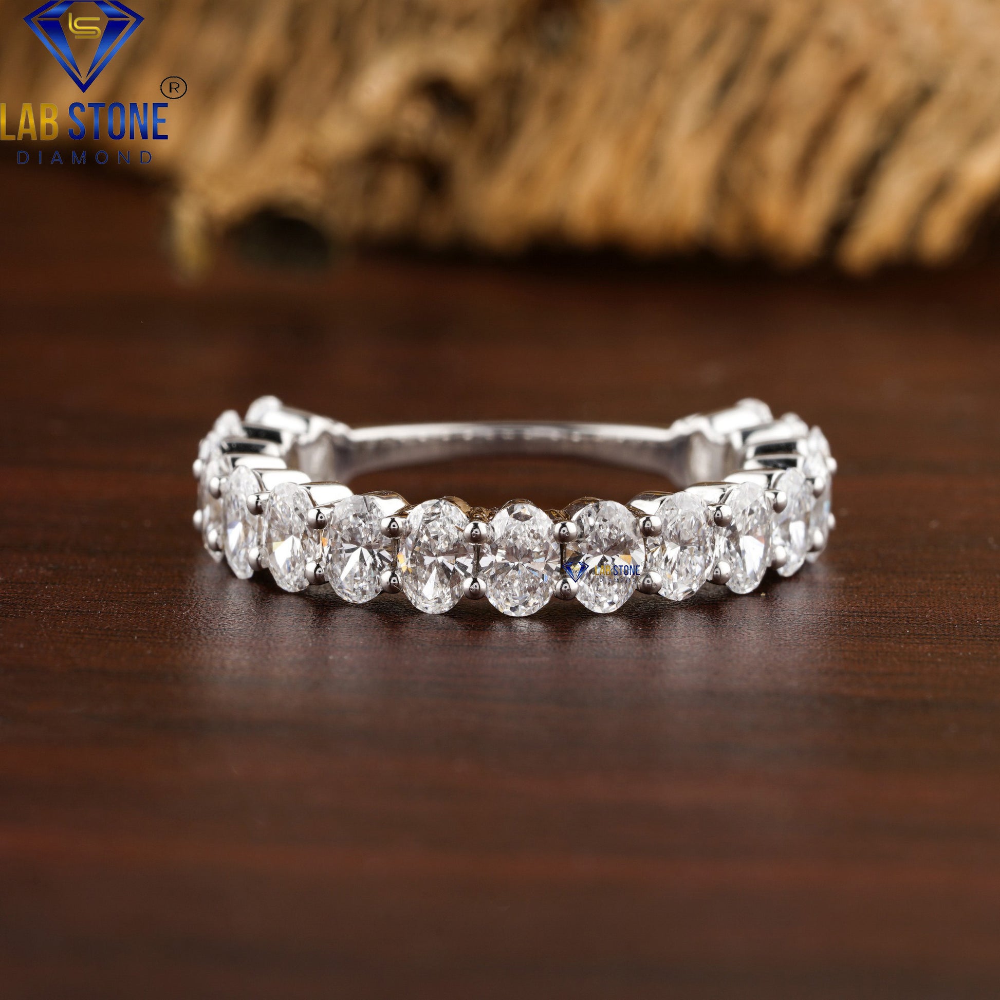 This 1.92 total Diamond weight oval cut diamond half eternity band beautifully showcases a row of sparkling oval diamonds set halfway around a sleek band. Designed with a classic and timeless aesthetic, this band radiates brilliance and sophistication. Perfect for weddings, anniversaries, or as a stackable ring, it complements other jewelry pieces effortlessly while symbolizing love and enduring commitment.