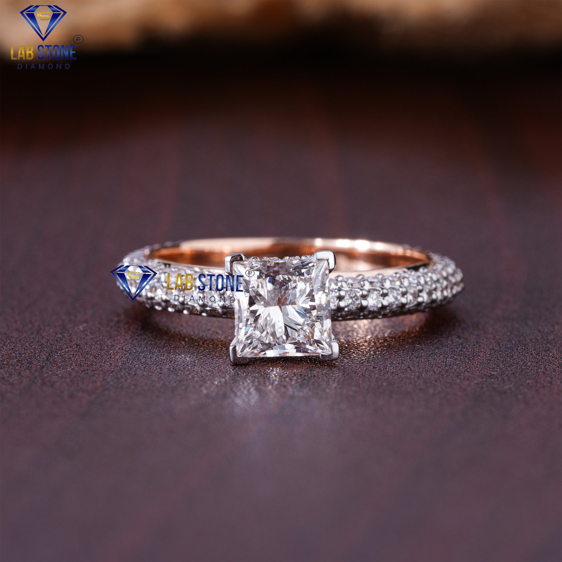 This stunning 1.96 total diamond weight hidden halo ring features a bright princess cut center diamond surrounded by sparkling round cut diamonds. The halo design makes the center stone look bigger and adds extra shine from every angle. Elegant and eye-catching, this ring is perfect for engagements, anniversaries, or special occasions. Crafted with care, it’s a beautiful choice for someone who loves glamorous sparkle with a classic, timeless look.