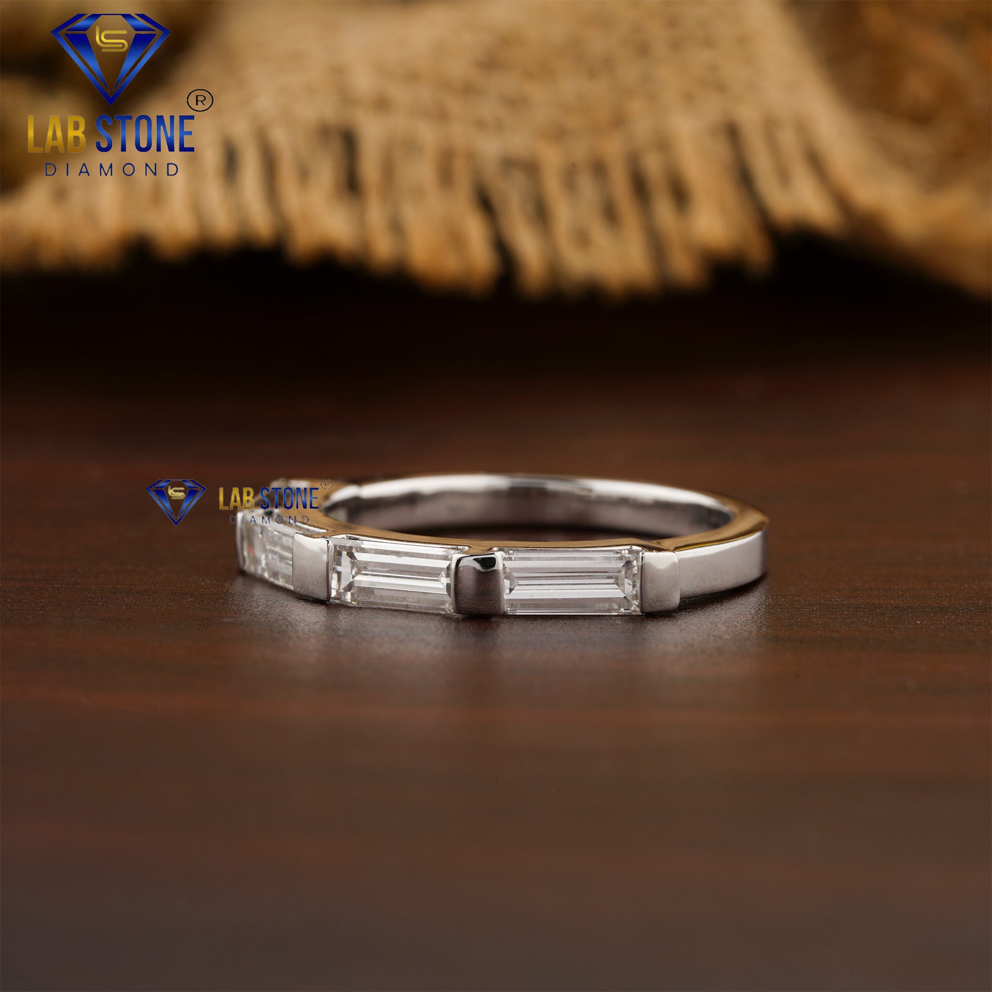 This elegant 2.00 total diamond weight band features shining baguette cut diamonds set in a neat, straight row. The slim and modern design makes it perfect as a wedding band, anniversary ring, or for stacking with other rings. Comfortable to wear and full of clean sparkle, this diamond band is a timeless choice for anyone who loves simple, classy, and stylish jewelry.