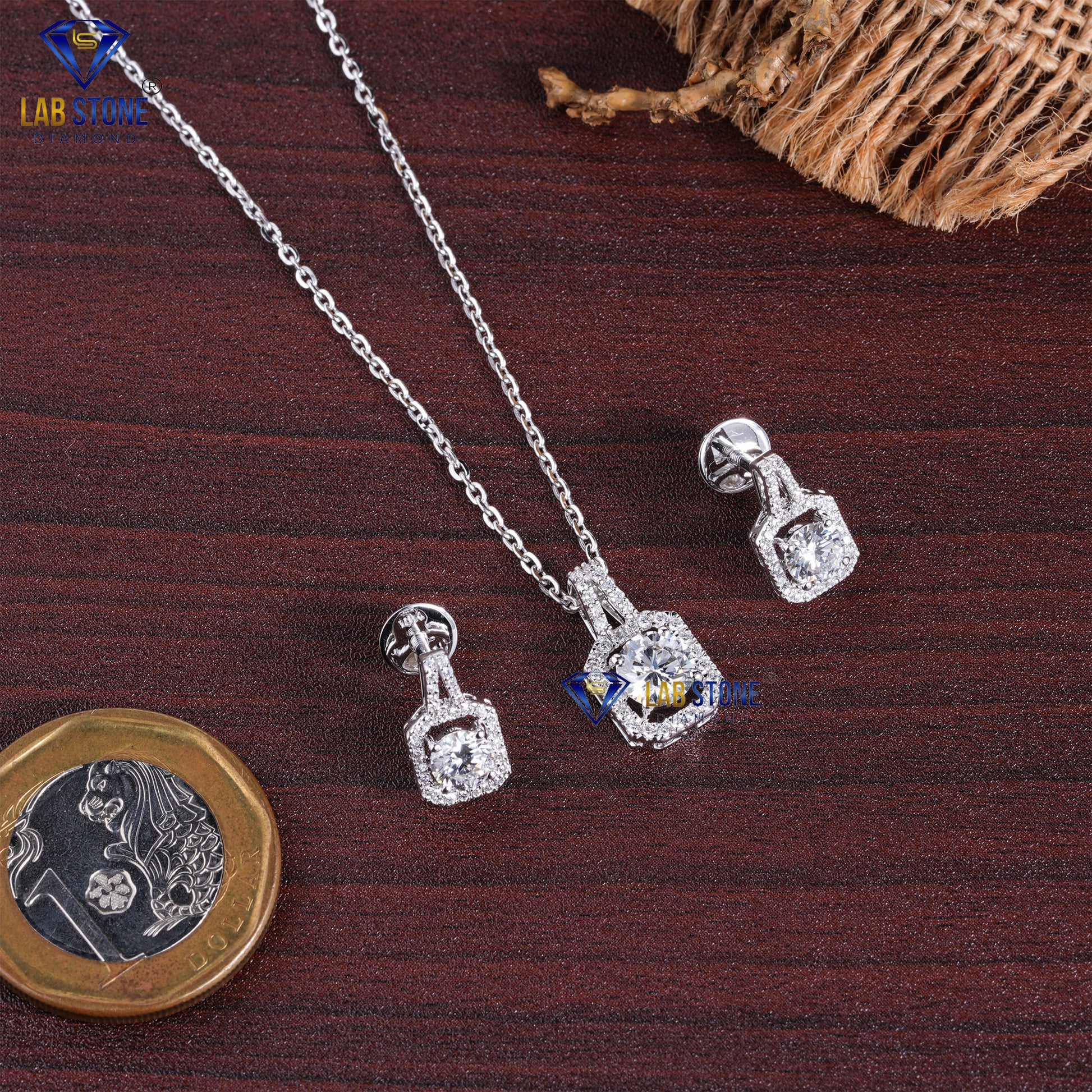 2.03 TDW Round Cut Diamond Pendant & Earring