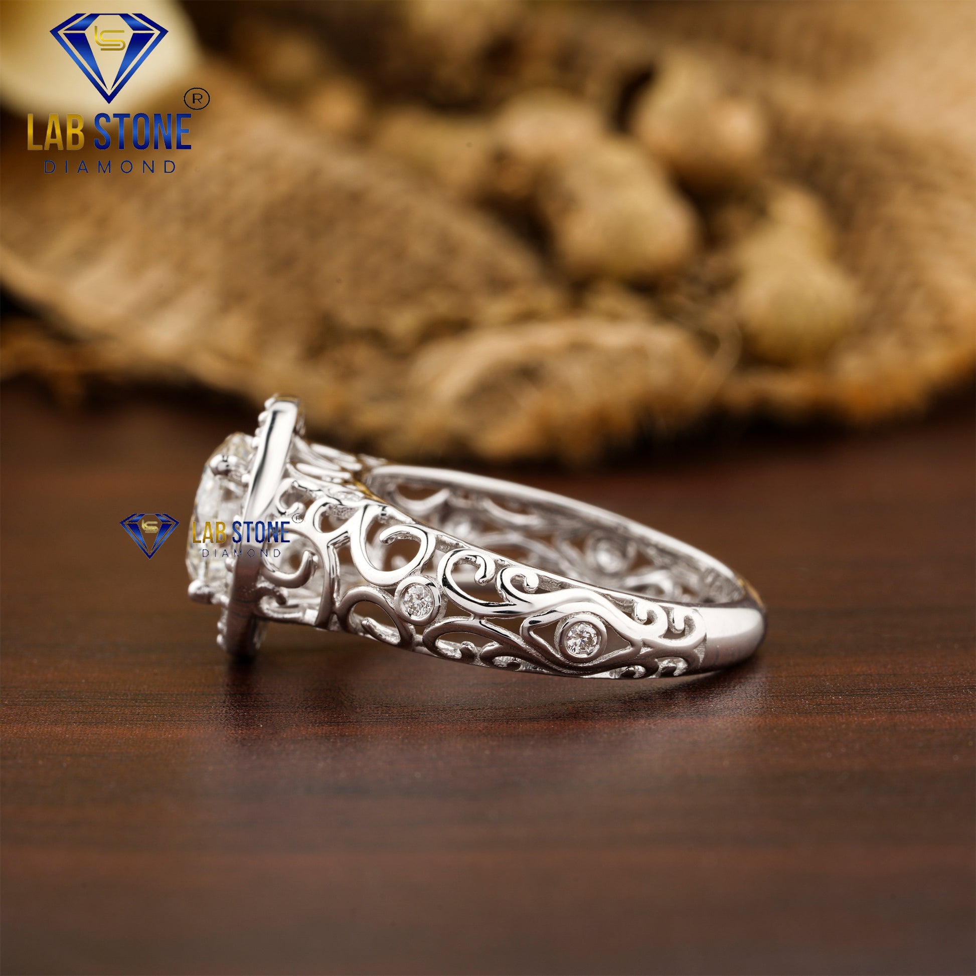Experience timeless brilliance with this stunning 2.062 TDW Round Cut Women’s Diamond Halo Ring.At the center of this elegant design sits a brilliant round-cut diamond, expertly framed by a shimmering halo of smaller round accent stones. The halo enhances the size, sparkle, and radiance of the center diamond, creating a breathtaking glow from every angle. Additional diamonds along the band elevate the look with even more luxurious shine.