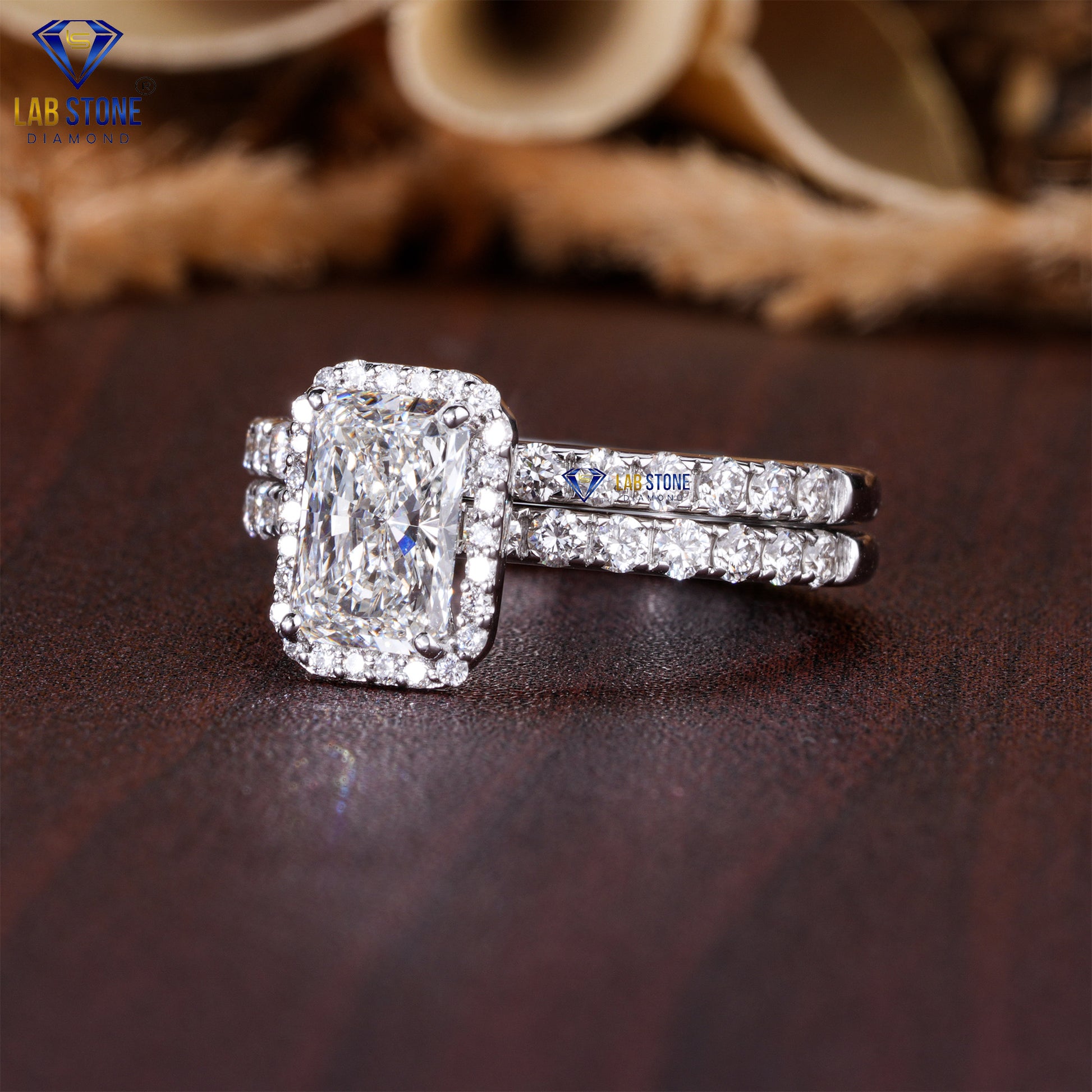 This stunning 2.44 total diamond weight ring set features a bright radiant cut diamond in the main ring, beautifully accented with round cut diamonds, and paired with a matching diamond band. Together, they create a full, sparkling look that shines from every angle. Perfect for engagements, weddings, or anniversaries, this set is crafted for both comfort and elegance, making it ideal for everyday wear and special moments. A beautiful choice for someone who loves classic style with lots of brilliant sparkle.