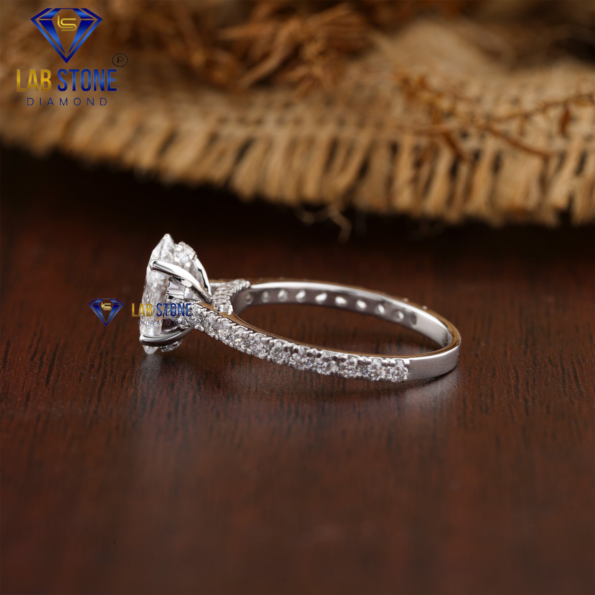 This elegant 2.45 total diamond weight engagement ring features a beautifully cut oval diamond center stone accented by sparkling round cut diamonds. The elongated oval cut lends a graceful and flattering silhouette to the finger, while the round cut accents provide dazzling brilliance and enhance the ring's sparkle. Crafted for timeless beauty, this ring perfectly balances classic and modern elements, making it an ideal symbol of lasting love and sophistication.