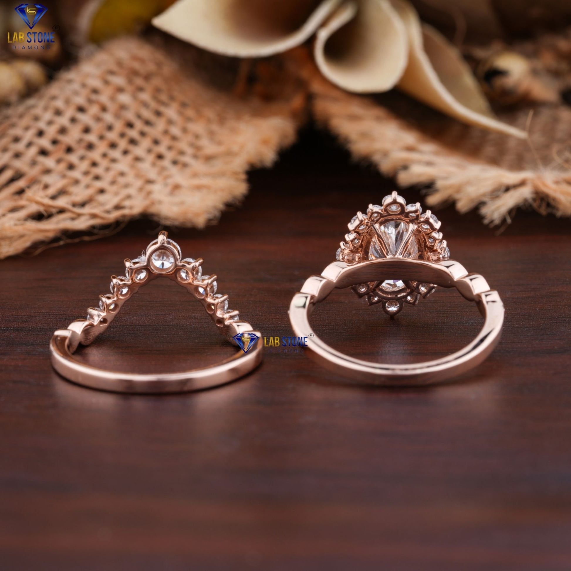 This 2.625 total diamond weight ring and band set features a dazzling mix of oval, marquise, and round cut diamonds that create a stunning sparkle. The elegant pairing adds brilliance and charm, making it perfect for engagements, weddings, or special occasions. A symbol of love and timeless beauty.
