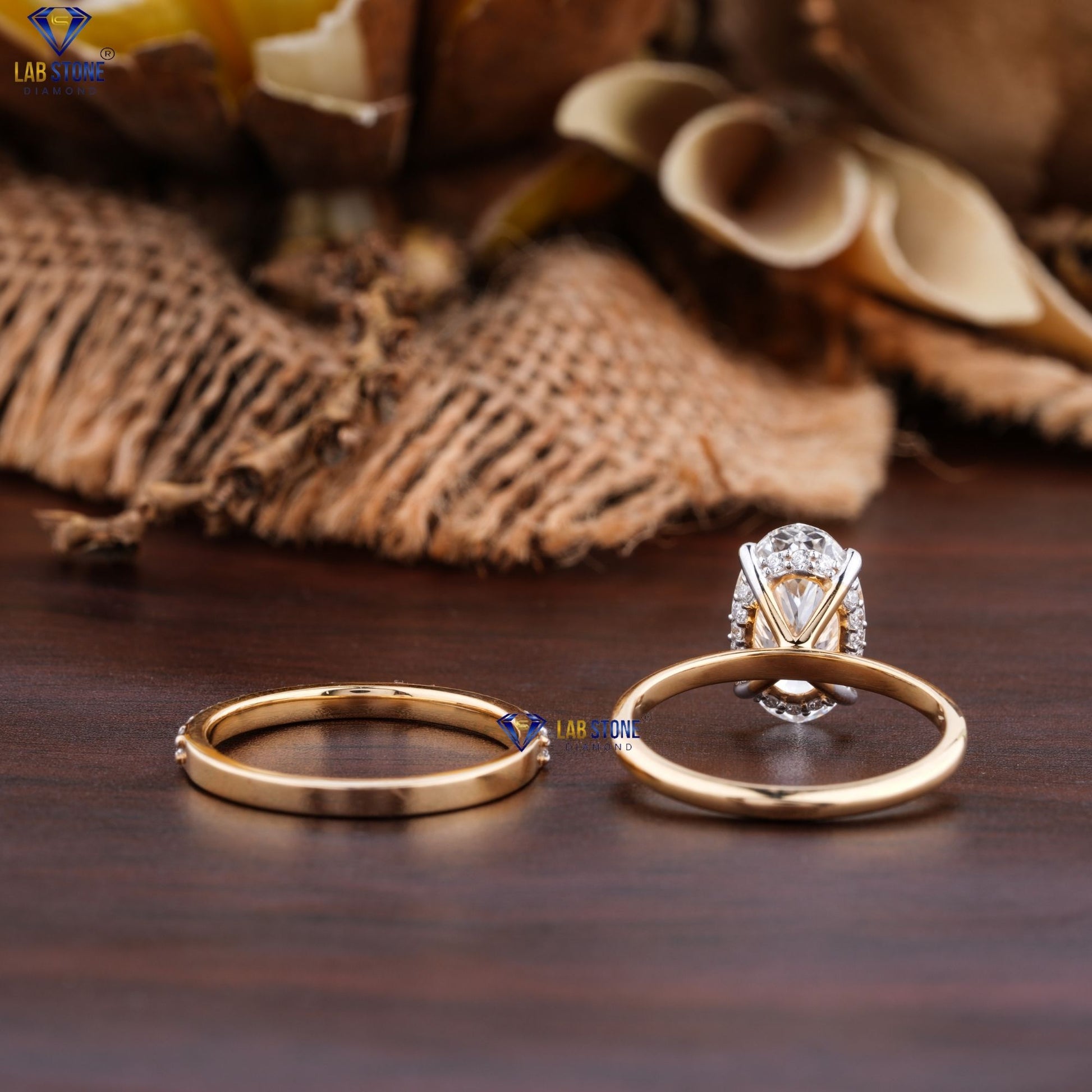 This 2.64 total diamond weight ring with band features a stunning combination of oval and round cut diamonds that shine from every angle. The matching band enhances the brilliance, creating a perfect set for engagements or special occasions. Elegant, timeless, and full of sparkle.