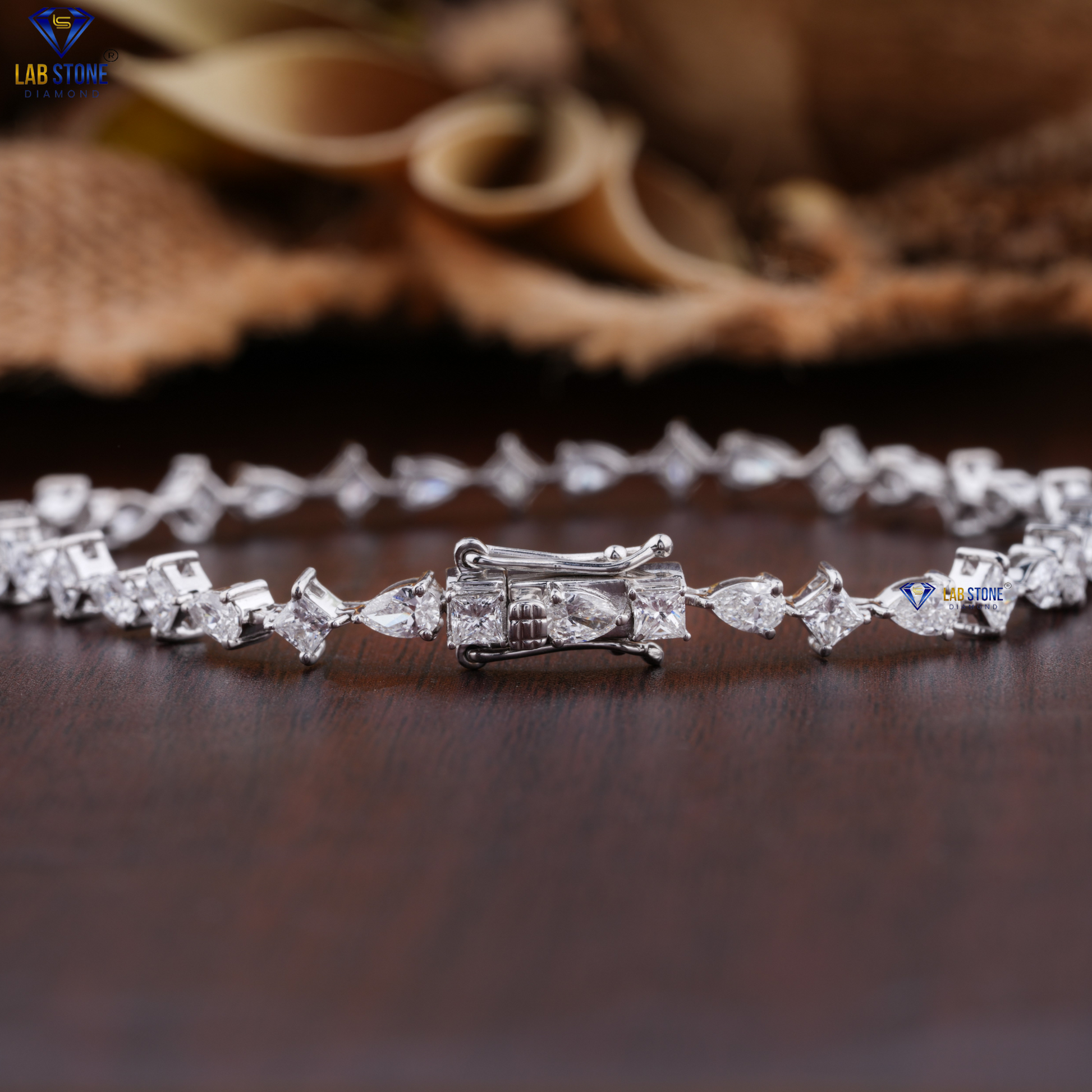 3.43 TDW Princess & Pear Cut Diamond Slider Bracelet
