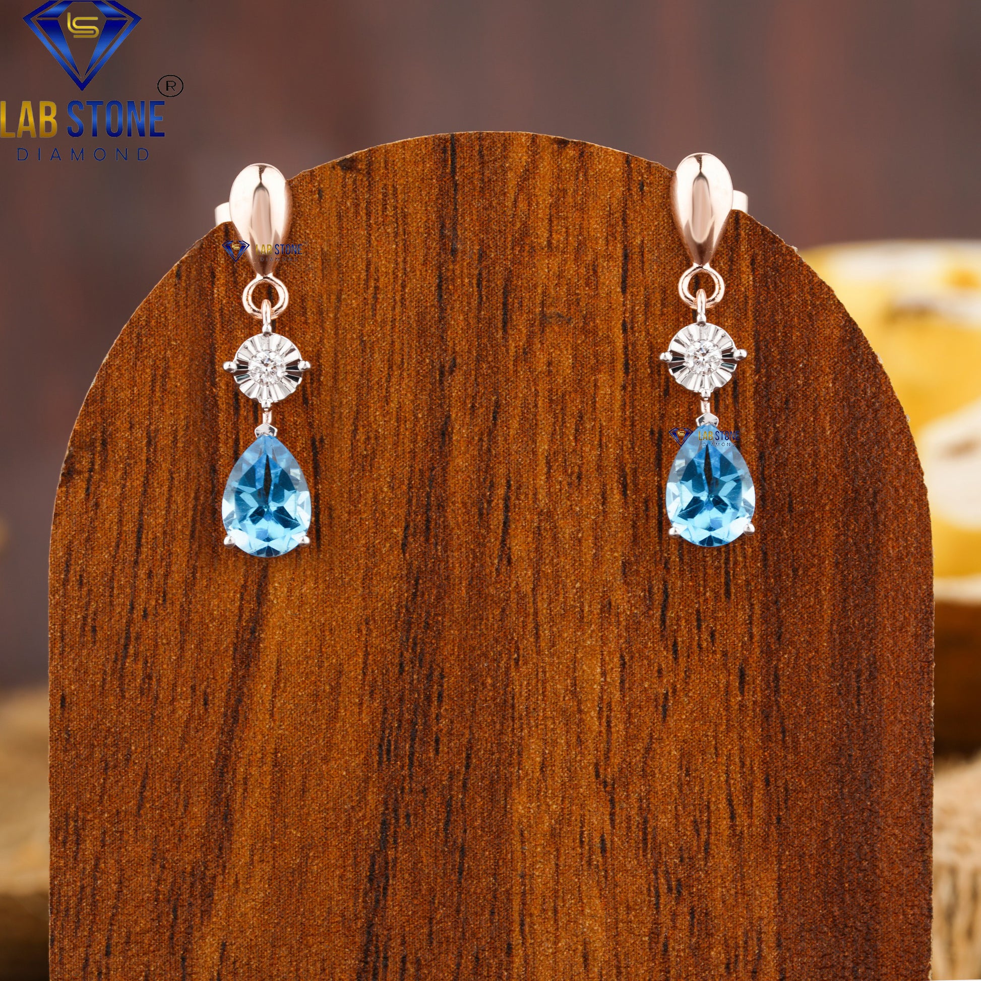 These stunning 3.67 total diamond weight drop and dangle earrings feature a beautiful mix of fancy blue pear-shaped diamonds and sparkling round diamonds. The blue pears add rich color and elegance, while the round diamonds give extra shine and movement with every step. Perfect for weddings, parties, and special occasions, these earrings are designed to stand out while still looking classy and refined. Lightweight and eye-catching, they’re a great choice for someone who loves luxury, color, and glamorous style.