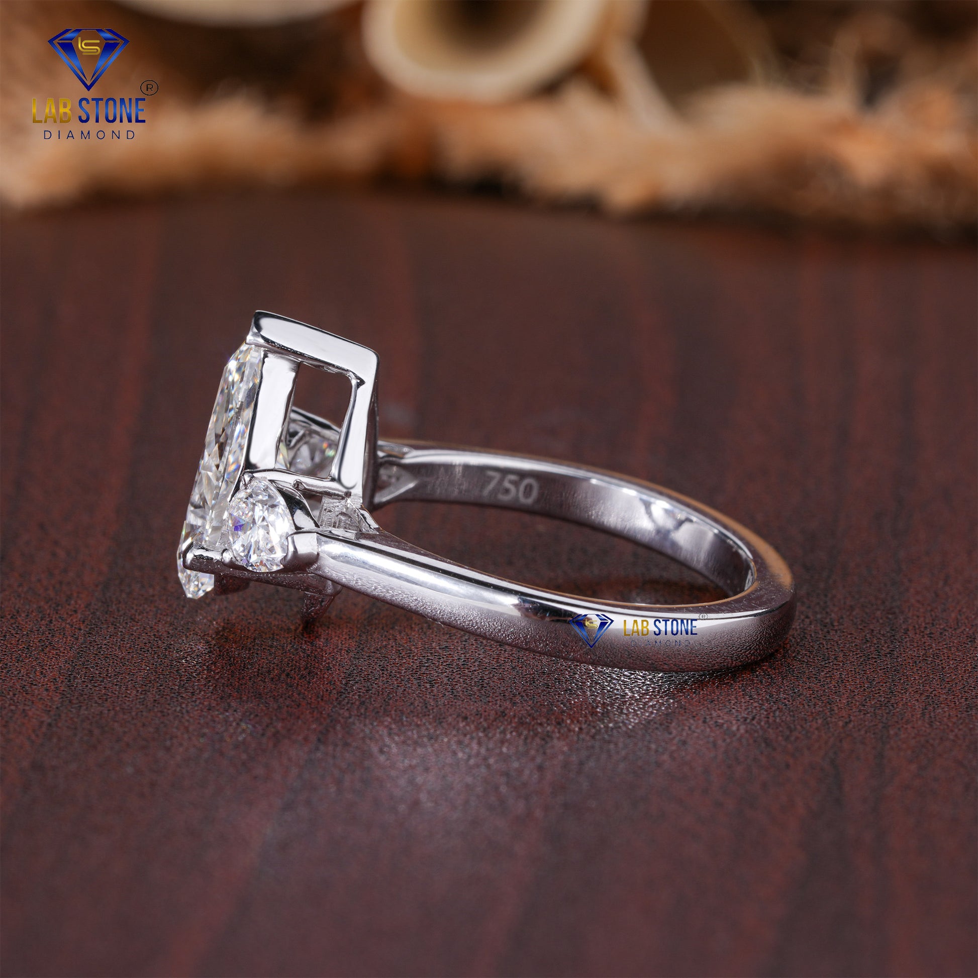 This 3.67 TDW Pear Cut Women's Diamond Three Stone Ring showcases a breathtaking trio of pear-shaped diamonds, totaling 3.67 carats. Each diamond is expertly cut to maximize brilliance, creating an elegant and symbolic design that represents the past, present, and future. With its graceful shape and radiant sparkle, this ring makes a stunning choice for engagements, anniversaries, or any meaningful celebration. A timeless piece crafted to shine beautifully for years to come.