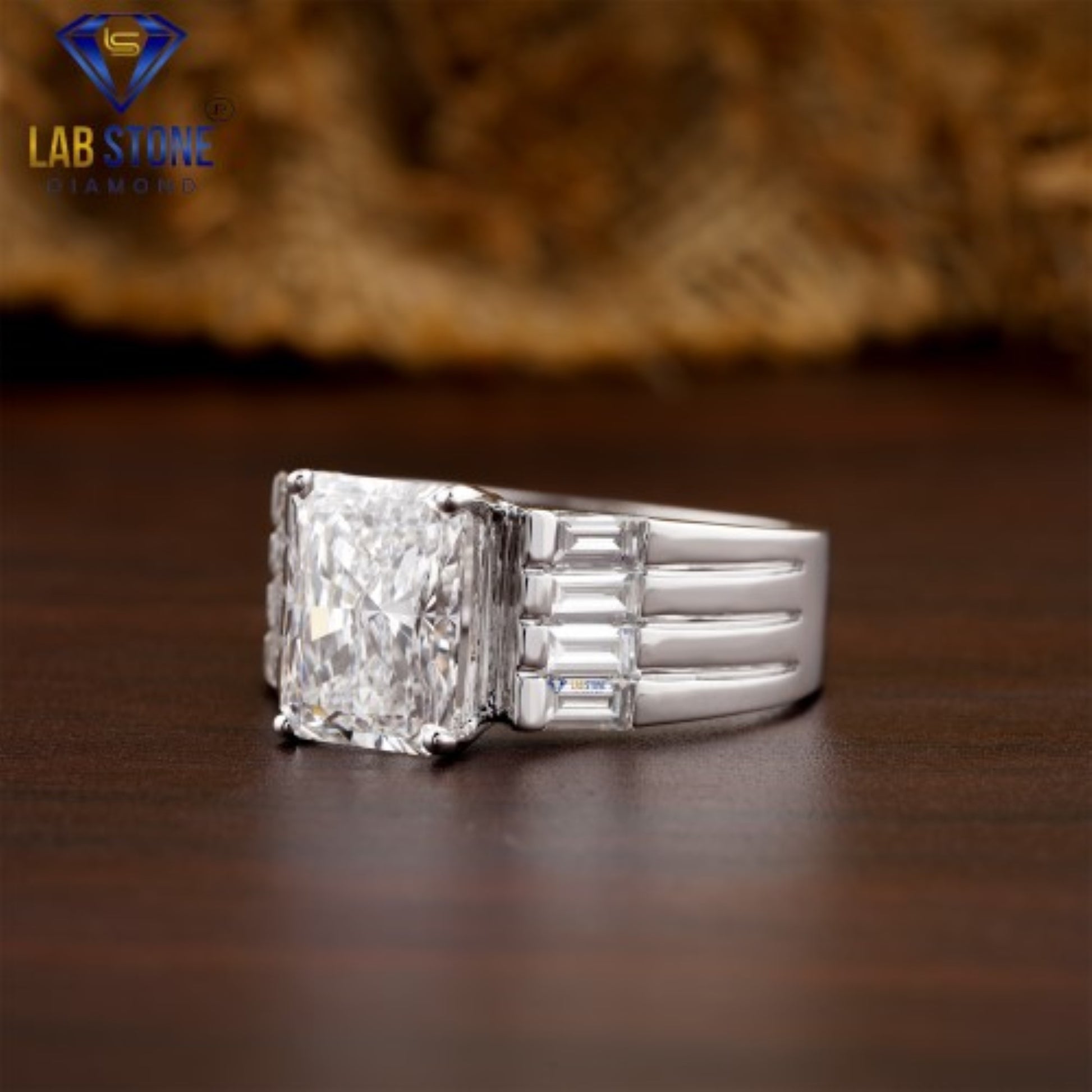 This impressive 4.22 total diamond weight men’s engagement ring features a bold radiant cut diamond paired with sleek baguette diamonds for a sharp, modern look. The mix of cuts gives the ring strong sparkle with clean lines, perfect for a man who likes luxury with a refined style. Ideal for an engagement, anniversary, or special gift, this ring feels solid, stylish, and comfortable for everyday wear — a powerful symbol of commitment and confidence.