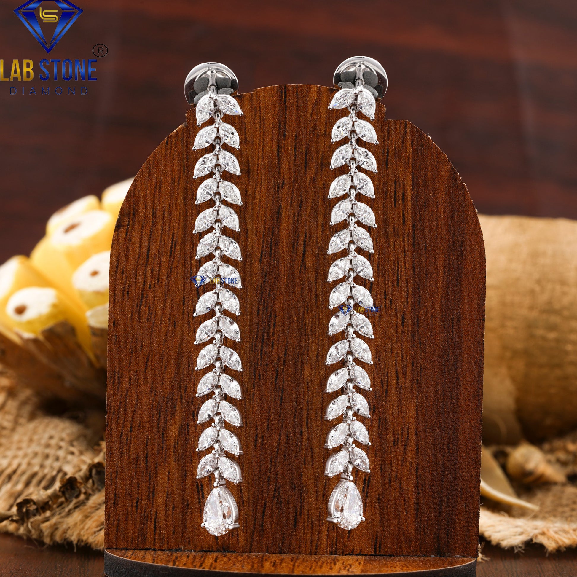 These stunning 4.33 total diamond weight drop and dangle earrings feature a beautiful mix of pear and marquise cut diamonds that sparkle with every move. The elegant shapes create a long, graceful look that’s perfect for weddings, parties, and special occasions. Designed to stand out while still looking classy, these earrings add instant glamour to any outfit. Lightweight yet luxurious, they’re a perfect choice for someone who loves bold sparkle and elegant style.