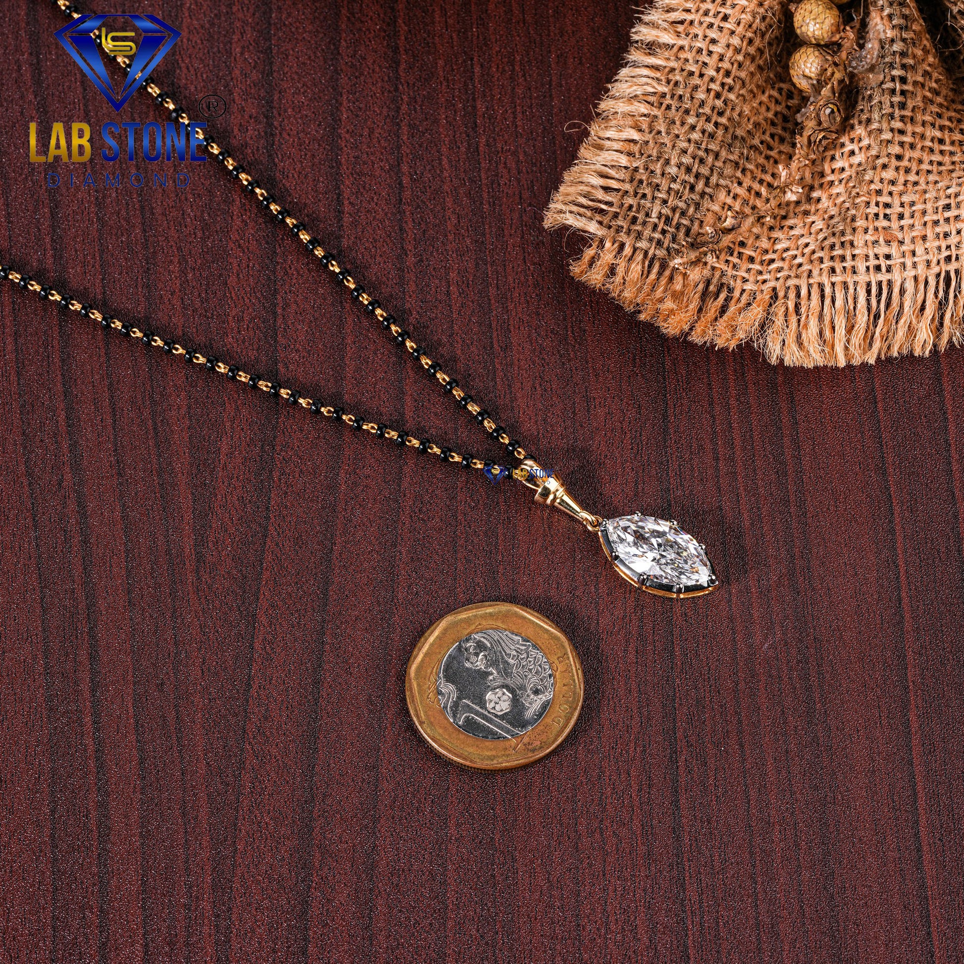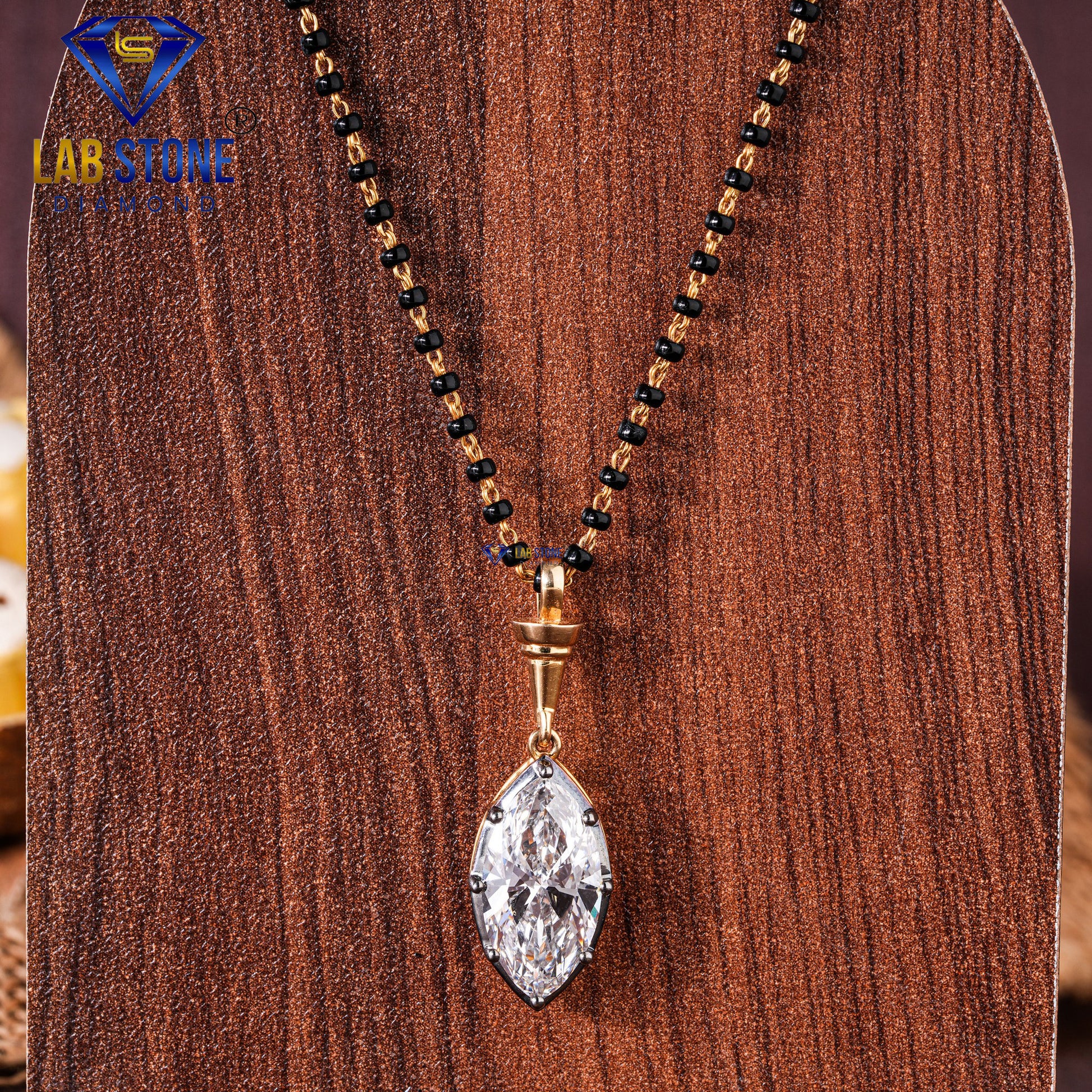 This beautiful 4.47 total diamond weight mangalsutra features elegant marquise cut diamonds that add a long, eye-catching sparkle. Designed for the modern bride, it combines traditional black beads with a stylish diamond centerpiece, creating a perfect blend of culture and fashion. Comfortable for daily wear yet special enough for occasions, this customized mangalsutra is a meaningful symbol of love, commitment, and timeless beauty a piece she will cherish every day.