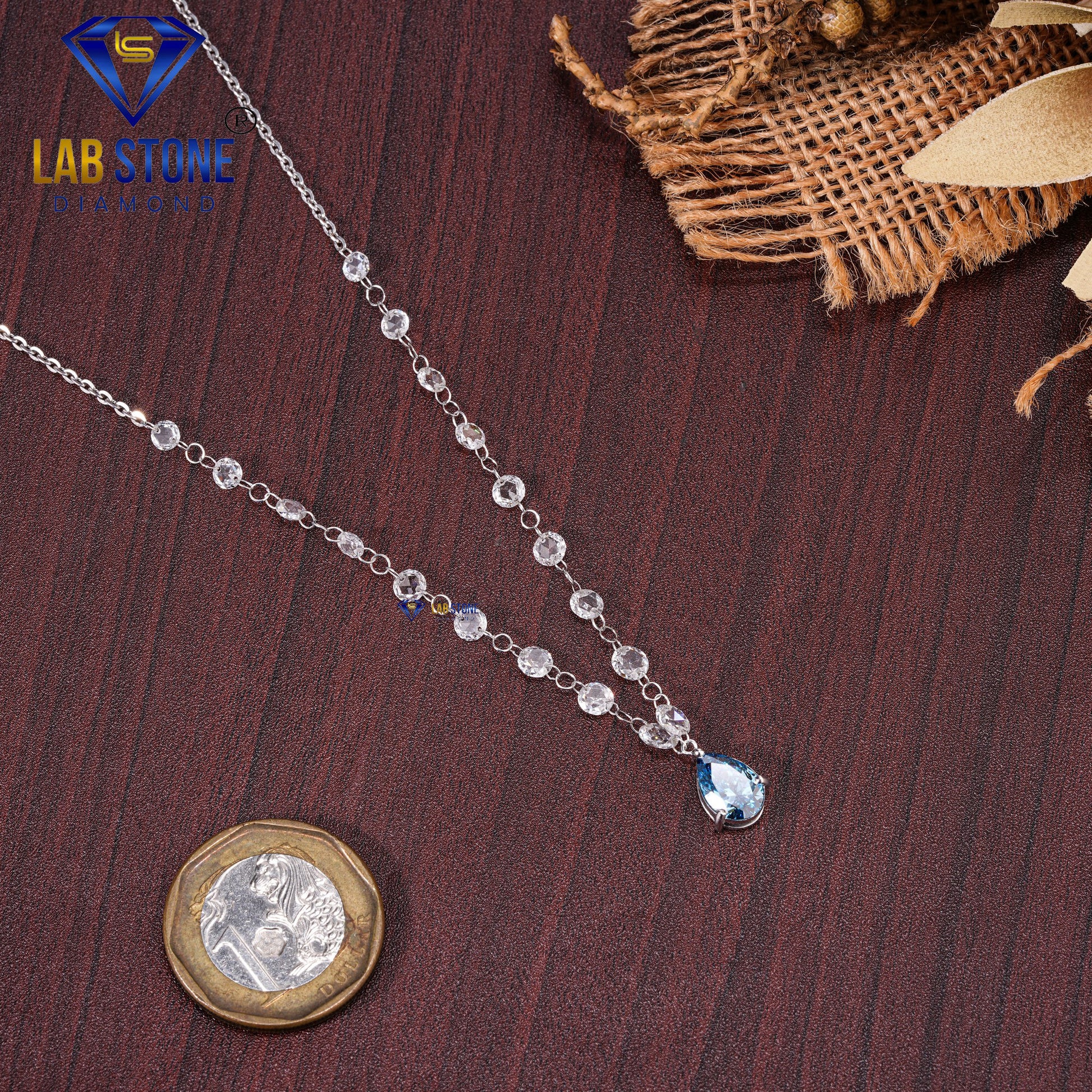 4.90 TDW Fancy Blue Pear & Rose Cut Daimond Women’s Custom Pendant