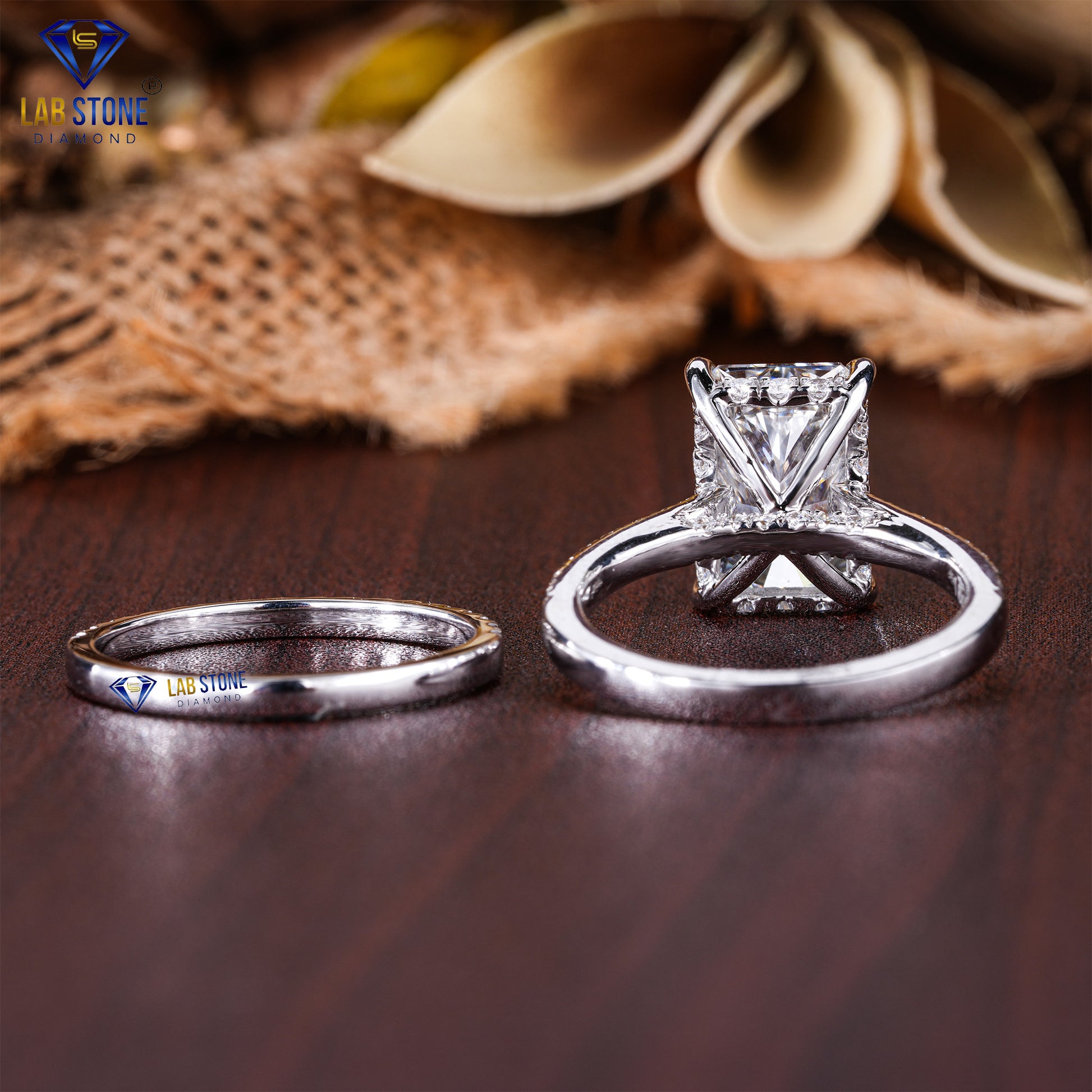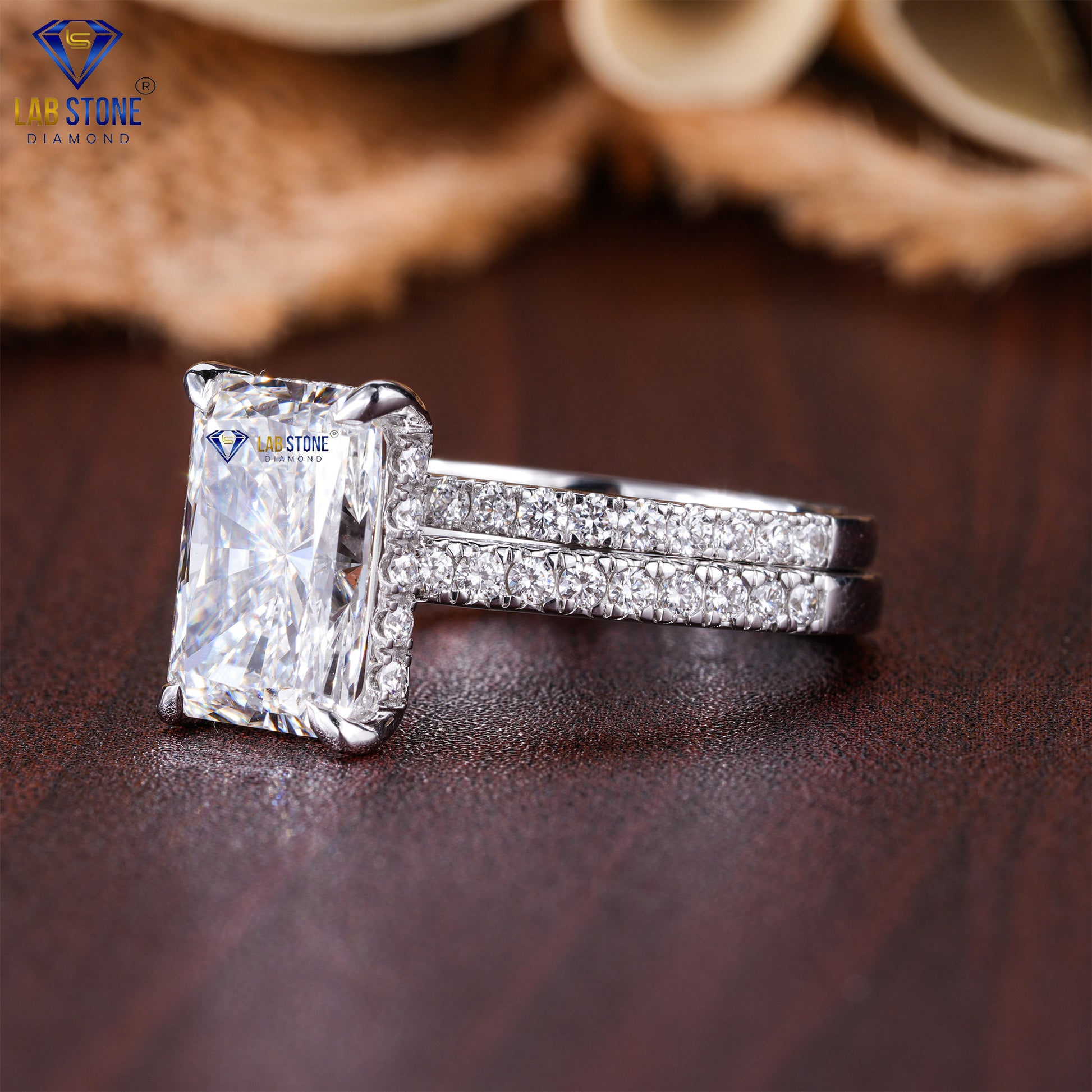 This stunning 5.18 total diamond weight ring set features a bold radiant cut diamond ring paired with a matching diamond band for a full, sparkling look. The radiant cut center stone shines brightly, while the band adds extra sparkle and completes the style. Perfect for engagements, weddings, or anniversaries, this set is made to stand out while still feeling elegant and timeless. Crafted with care, it’s a beautiful choice for someone who loves bright, luxurious, and classic jewelry.