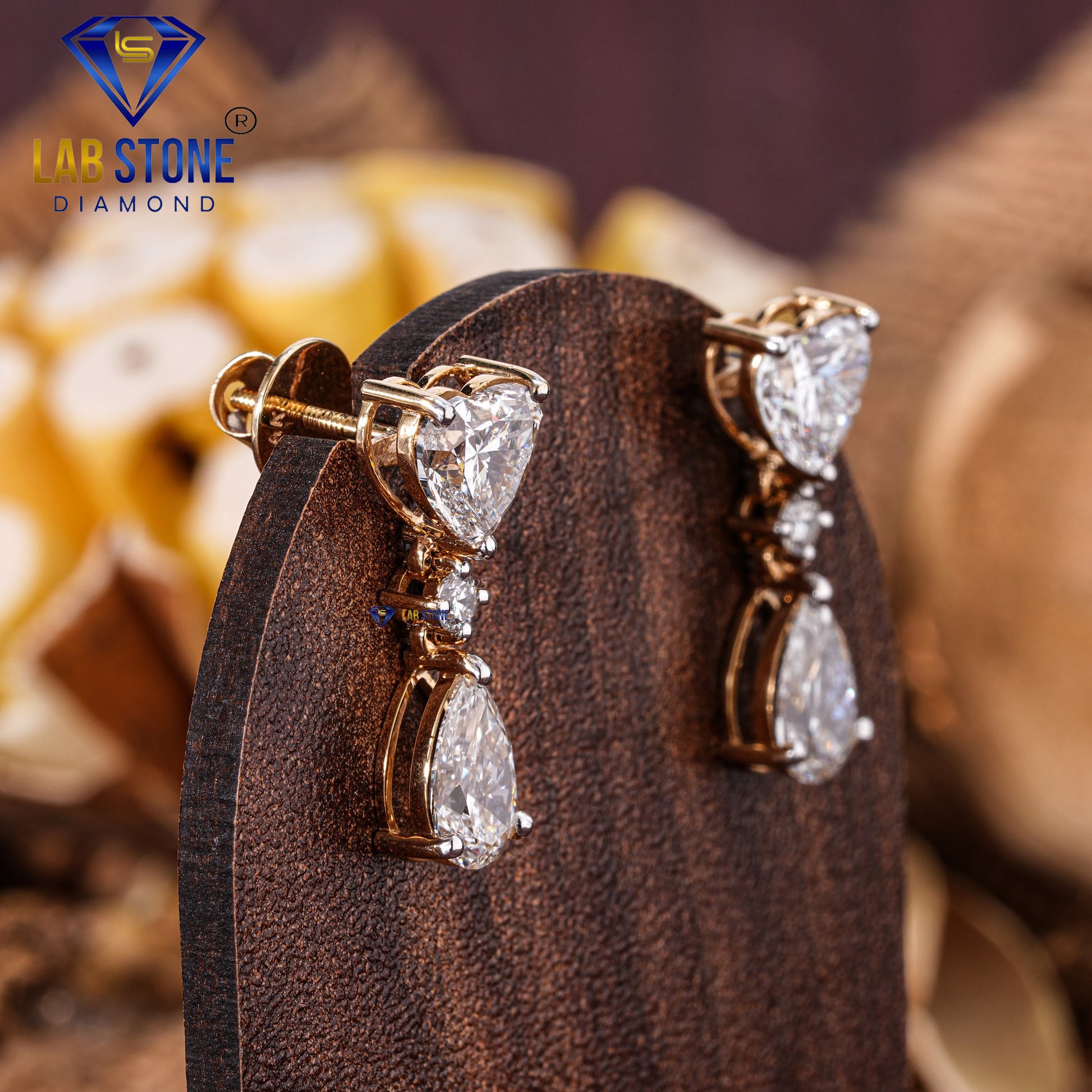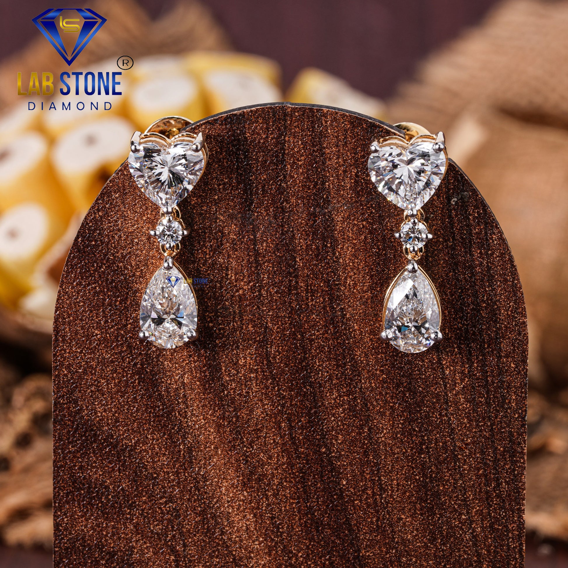 5.23 TDW Heart, Pear & Round Cut Diamond Drop & Dangle Earring
