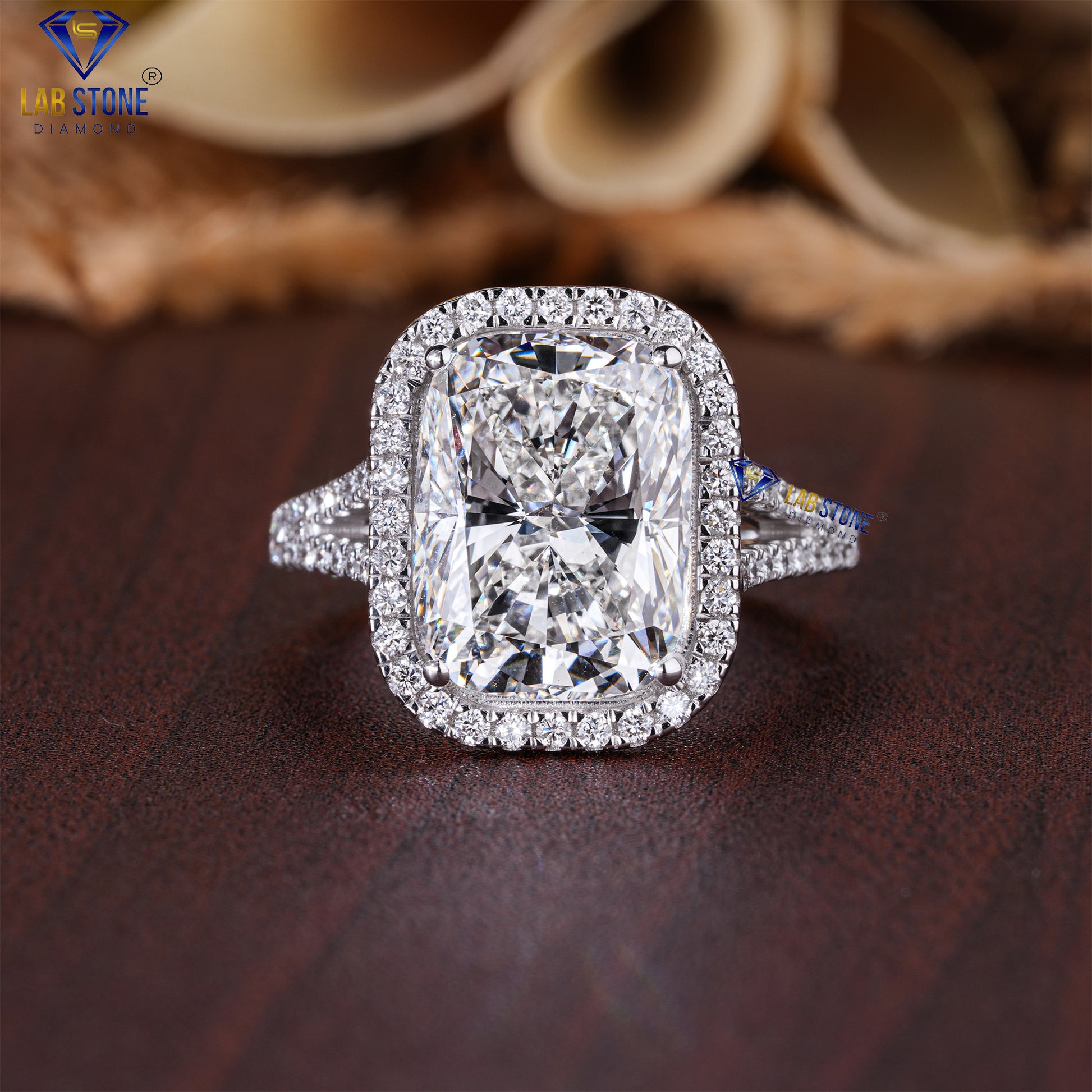 This 6.772 TDW Cushion & Round Cut Women's Diamond Halo Ring is a breathtaking statement piece crafted for true brilliance. Featuring a bold cushion-cut center diamond surrounded by a shimmering halo of round-cut stones, this ring delivers exceptional sparkle from every angle. With a total diamond weight of 6.772 carats, it offers unmatched radiance and luxury. Perfect for special occasions, anniversaries, or as a show-stopping engagement ring, this halo design blends timeless elegance with high-end glamour for an unforgettable look.