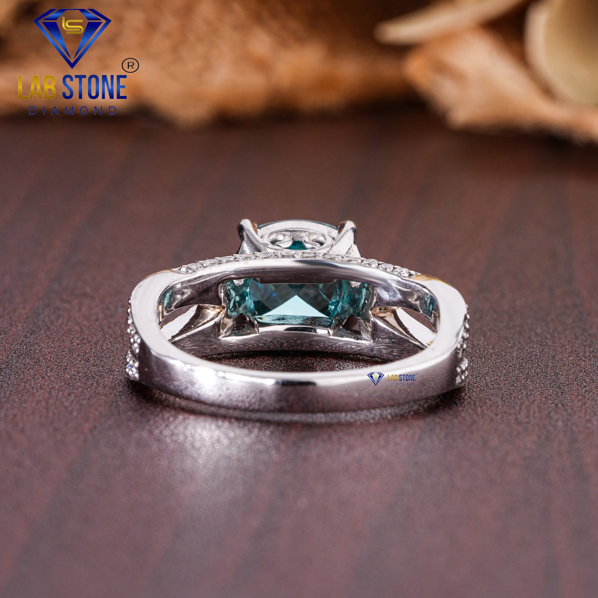 F. Light Blue Cushion & Round Cut Diamond Engagement Ring 3.23 TDW