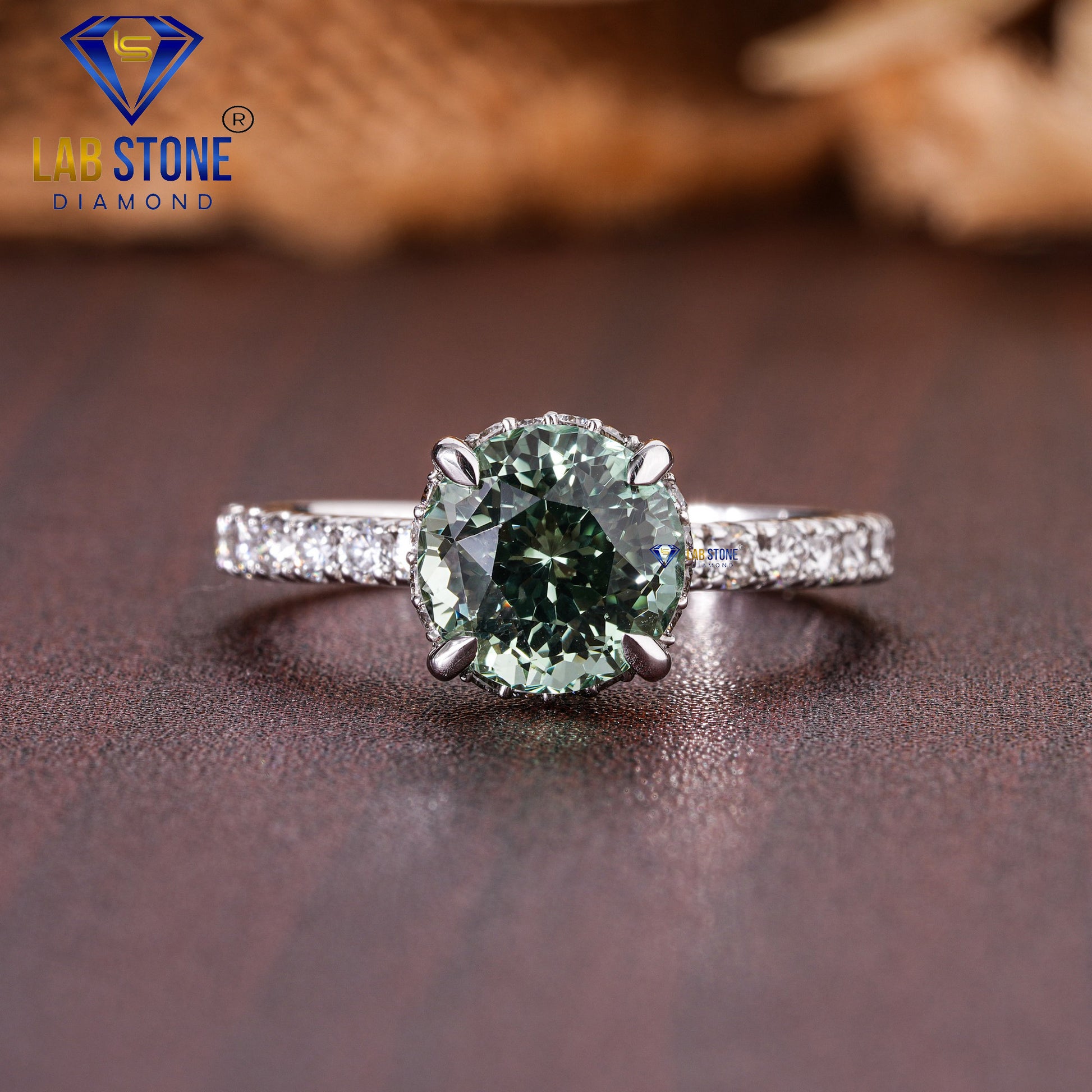 Elegant and enchanting, this engagement ring features a stunning combination of green and white round cut diamonds totaling 2.91 carats. The vivid green tones add a refreshing twist to a timeless design, symbolizing love, renewal, and individuality. A dazzling piece that captures attention and celebrates unique beauty.