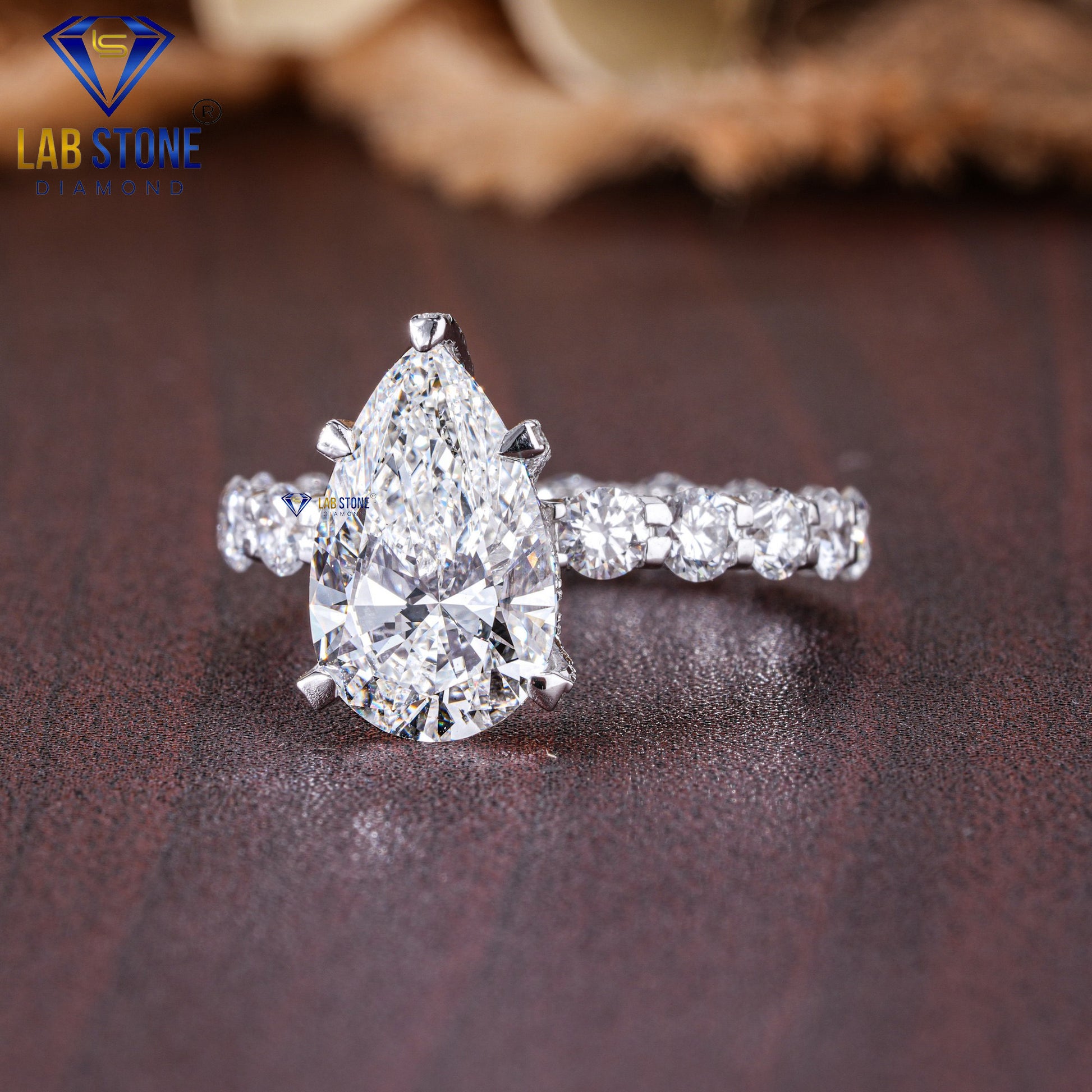 This captivating women’s hidden halo ring features a stunning mix of pear and round cut diamonds with a total weight of 5.11 TDW . The halo design enhances the brilliance of the center stone, adding depth and sparkle from every angle. Bold yet elegant, it makes a perfect engagement ring or statement piece for unforgettable moments.